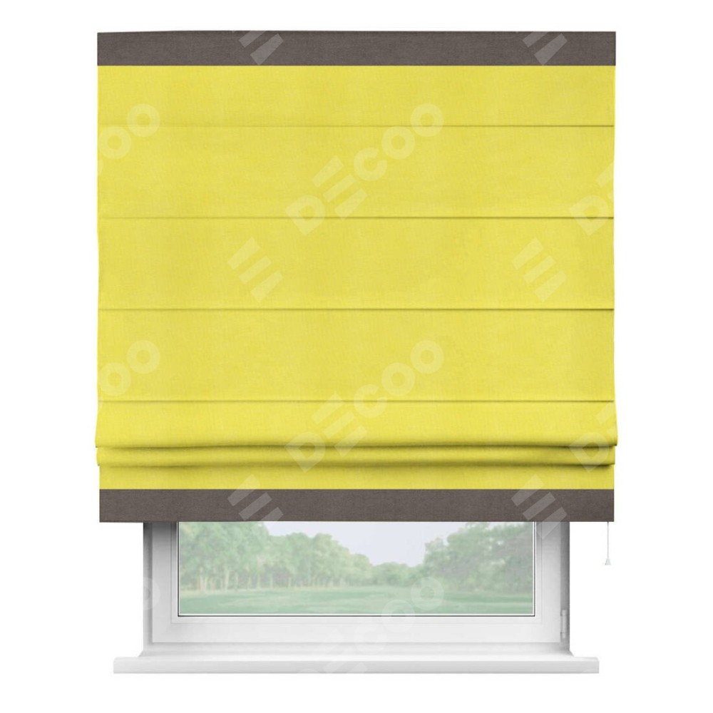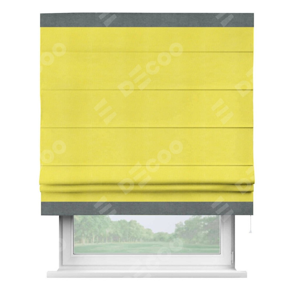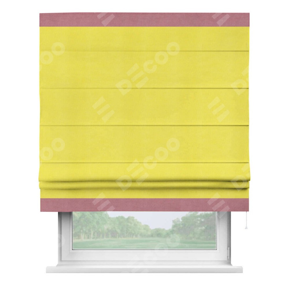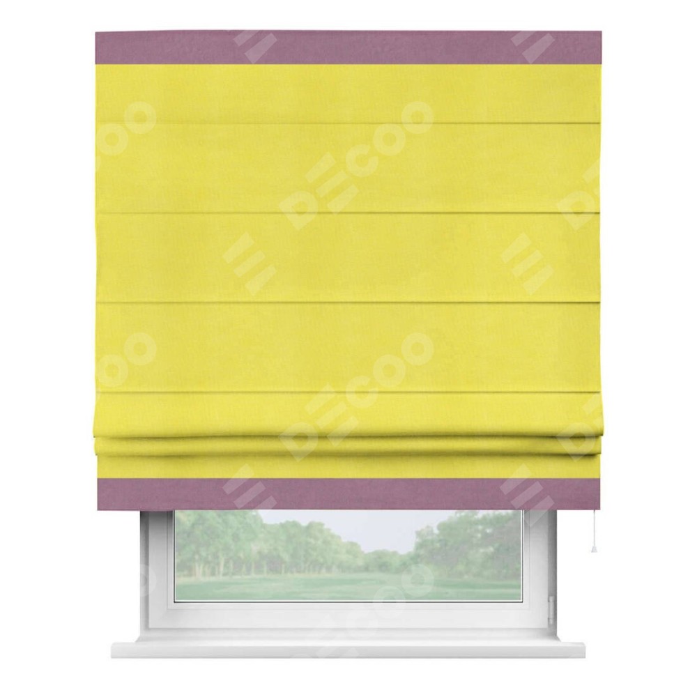 Римская штора «Кортин» с кантом Горизонт, для проема, ткань вельвет cветло-желтый