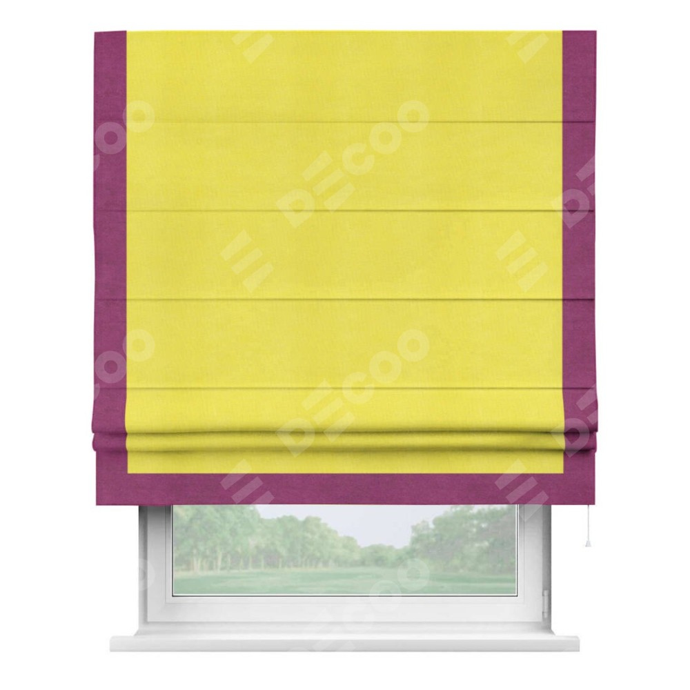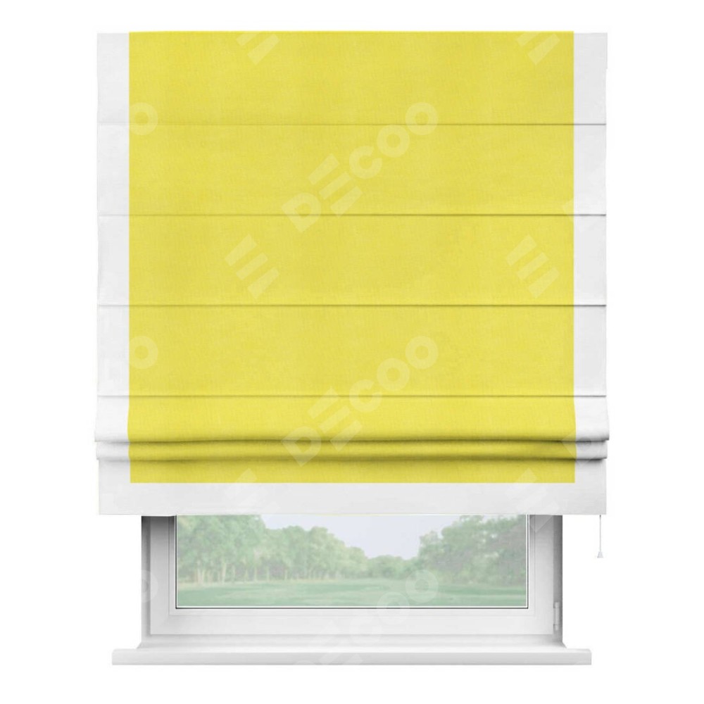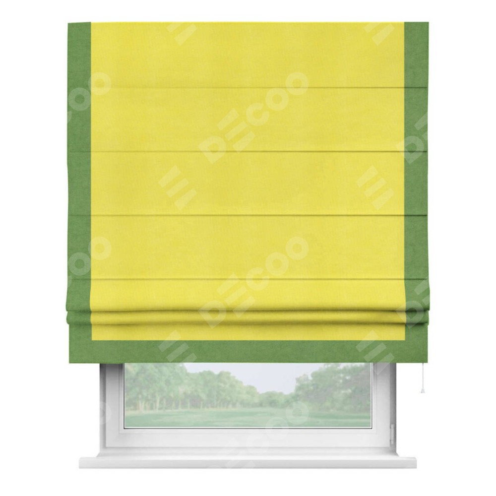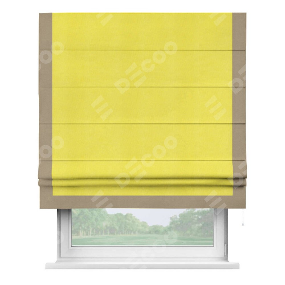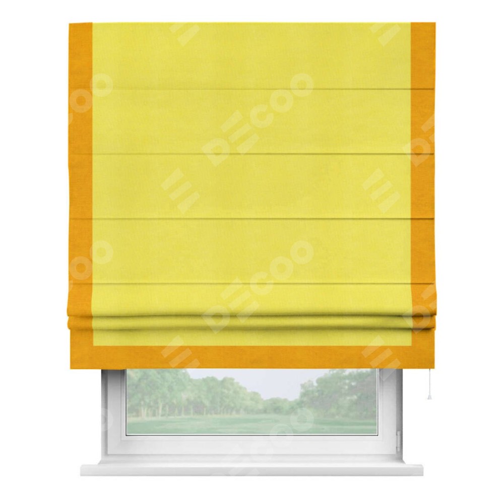 Римская штора «Кортин» с кантом Виктория, для проема, ткань вельвет cветло-желтый