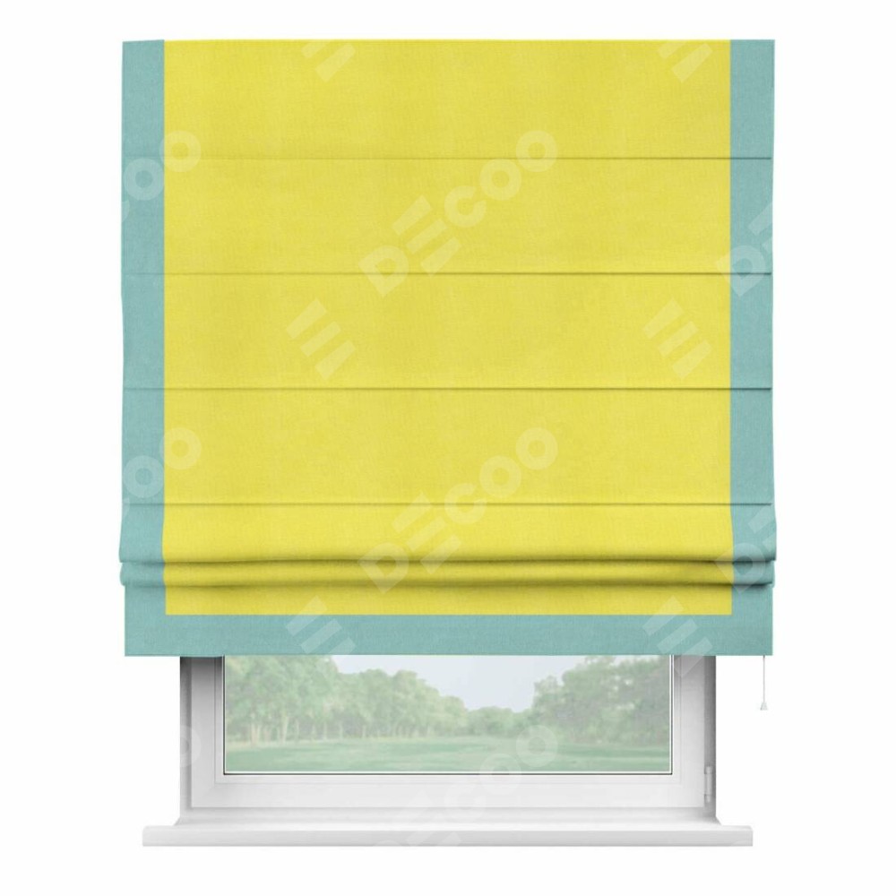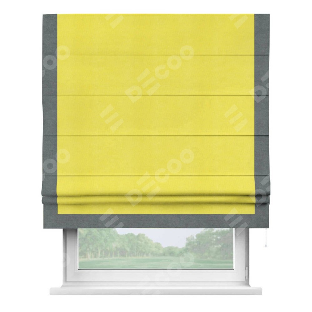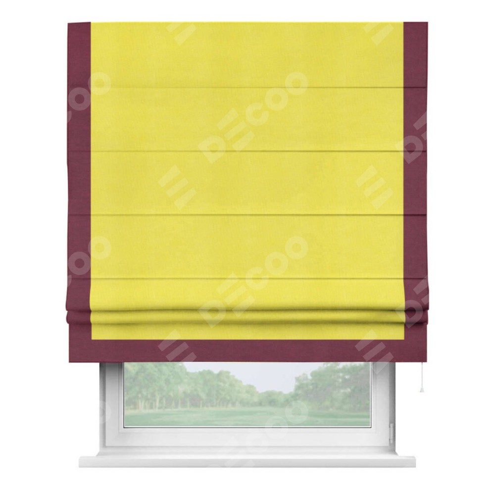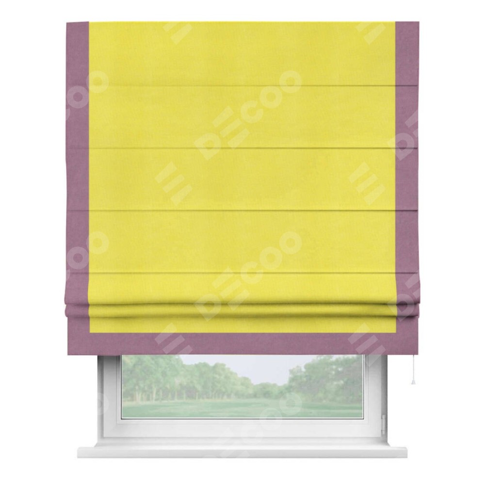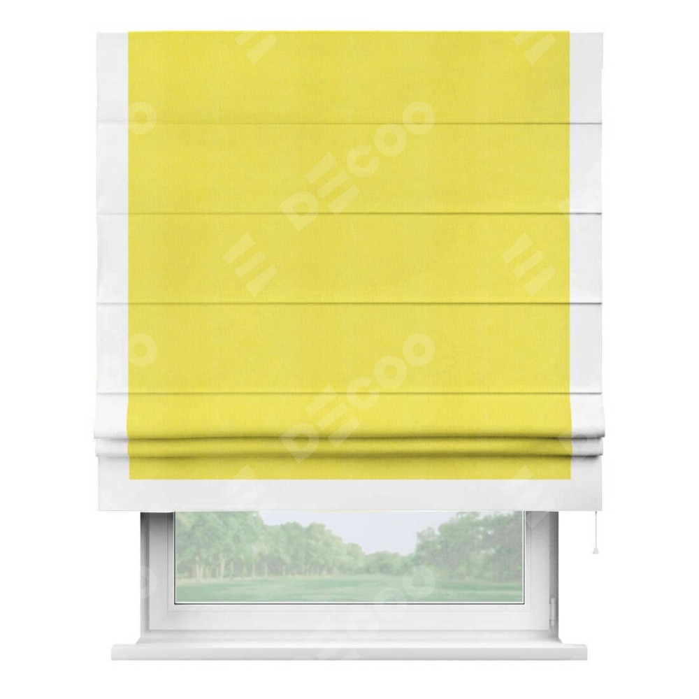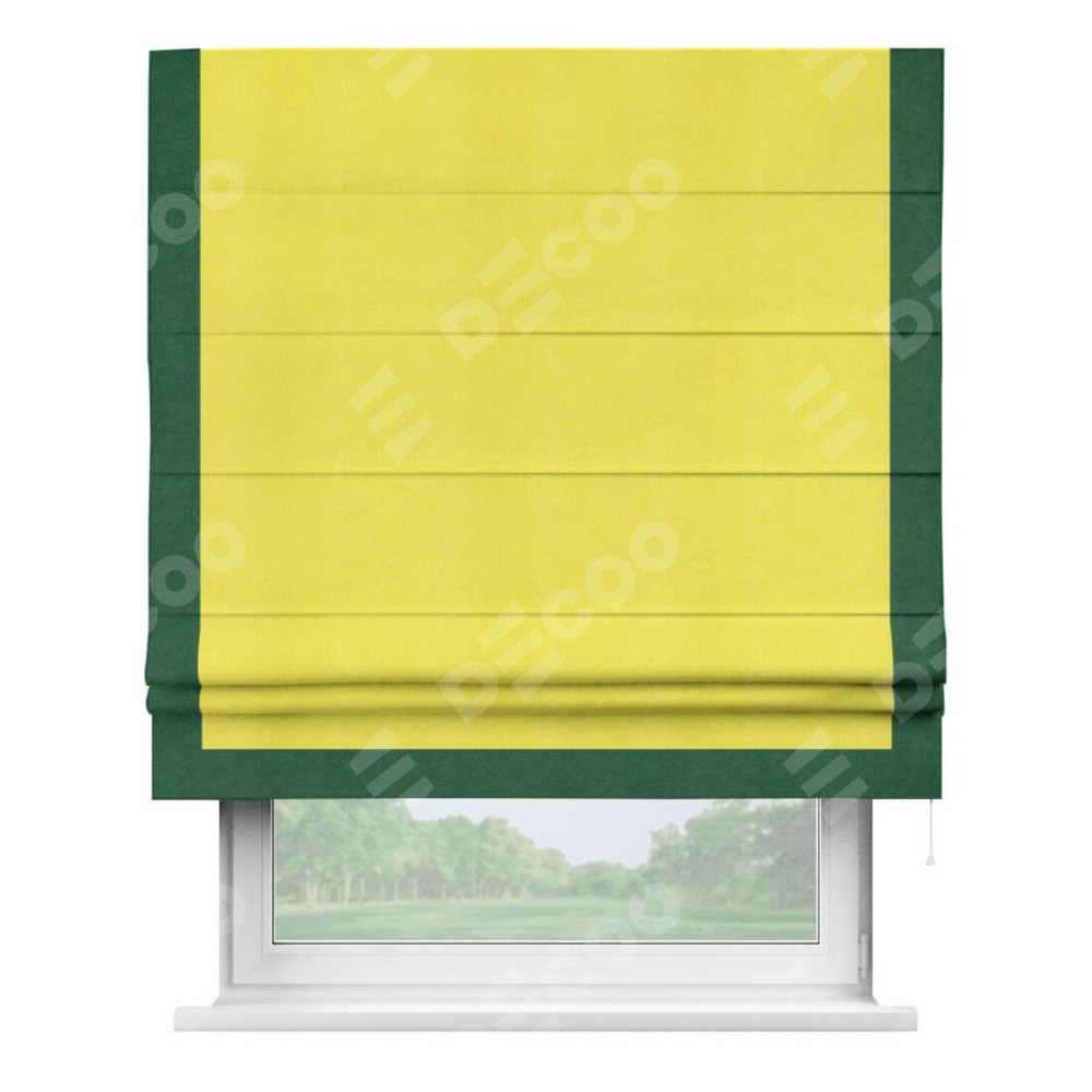 Римская штора «Кортин» с кантом Виктория, для проема, ткань вельвет cветло-желтый