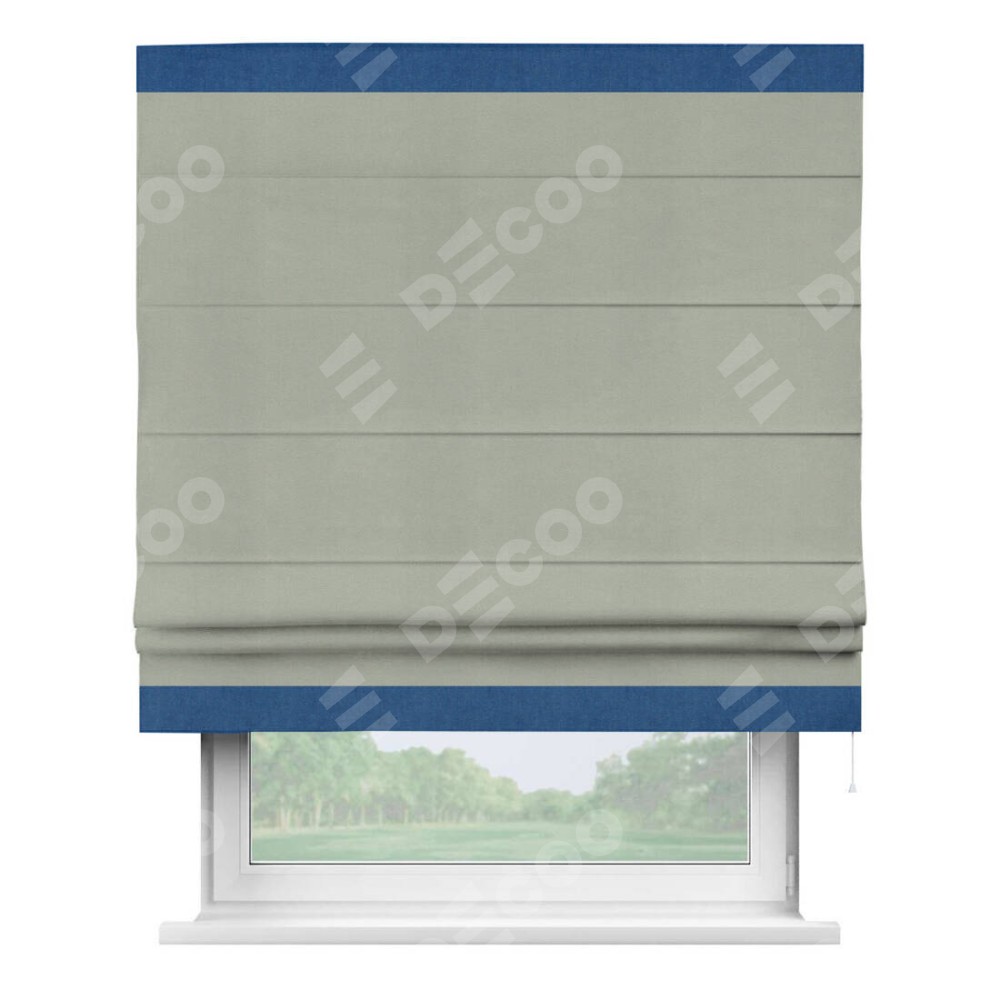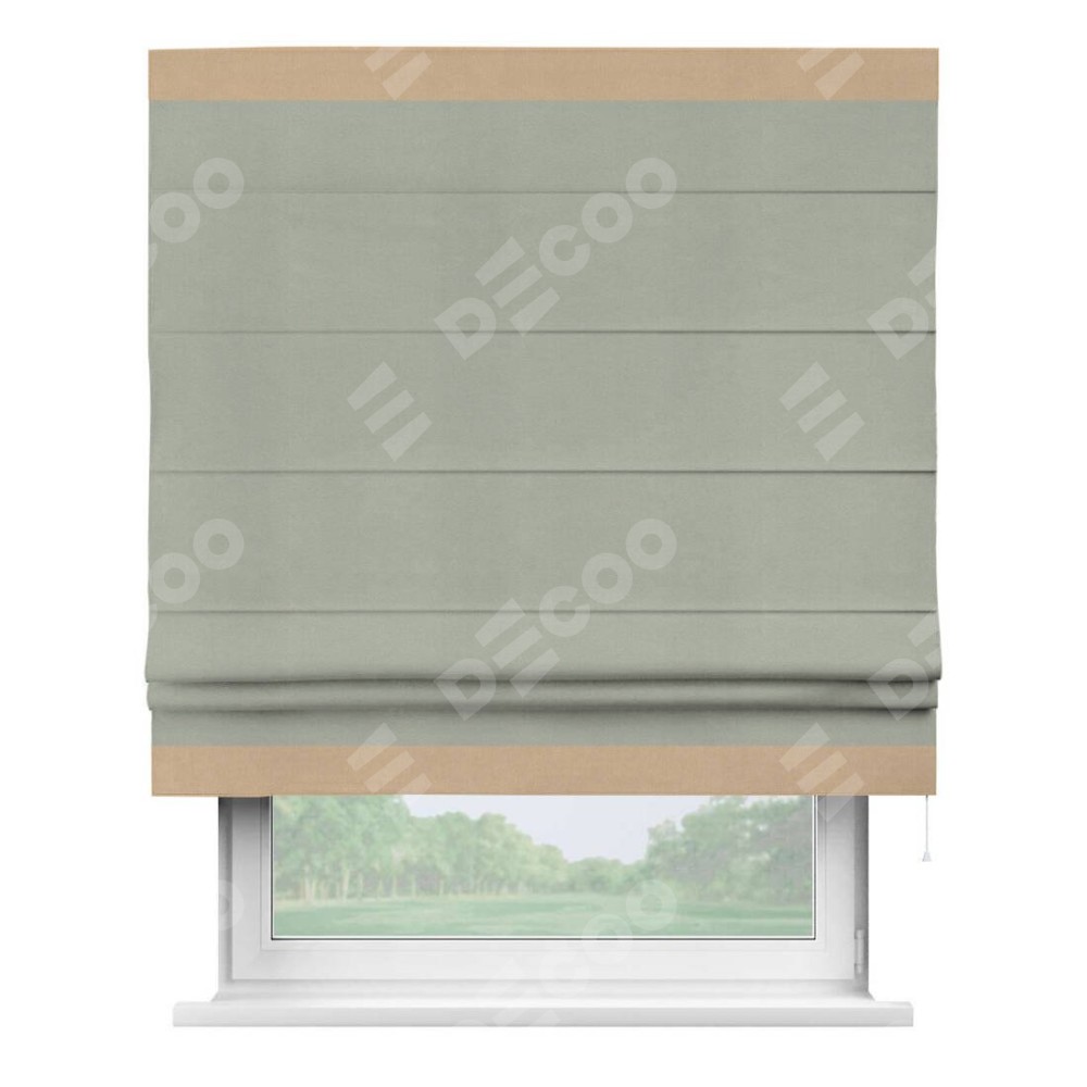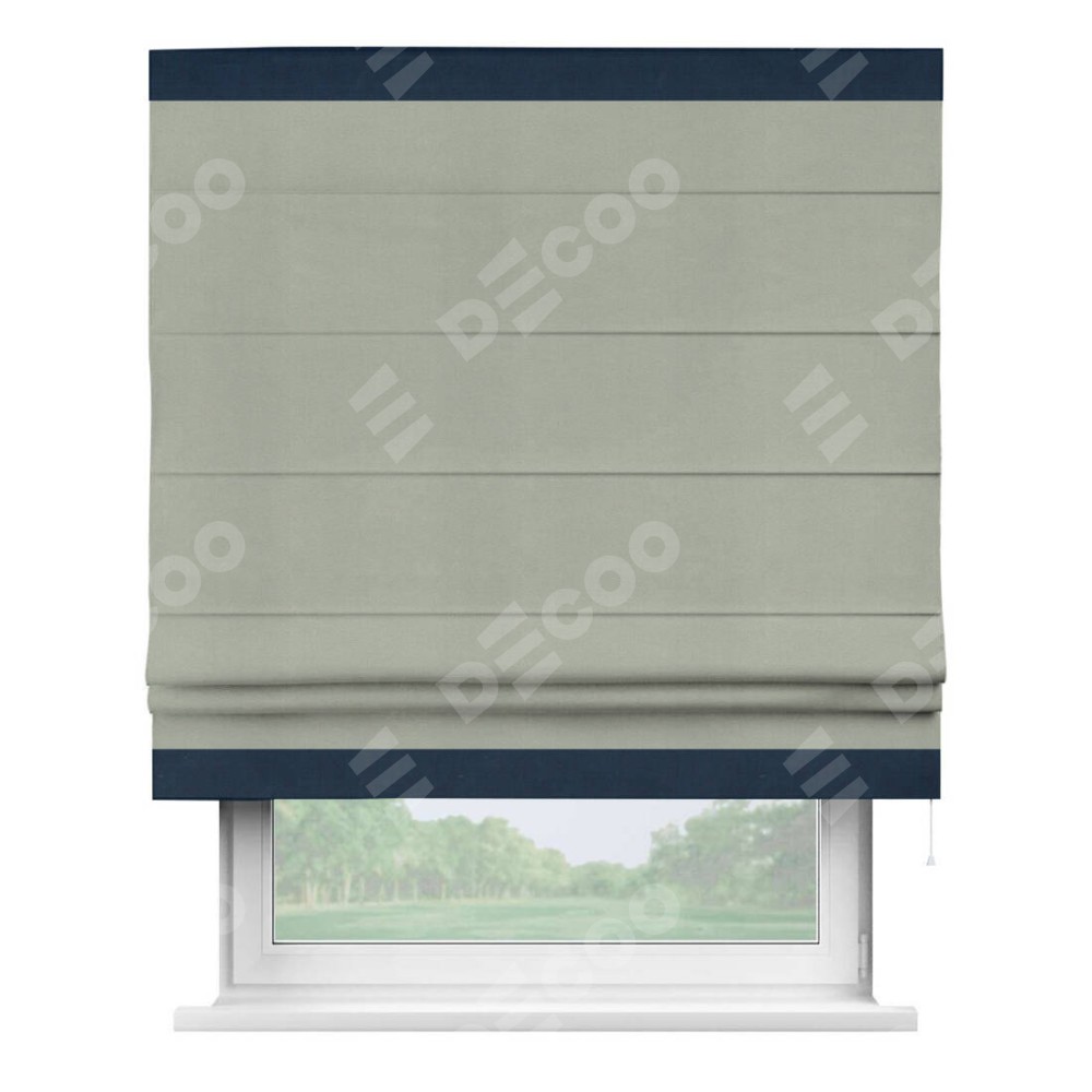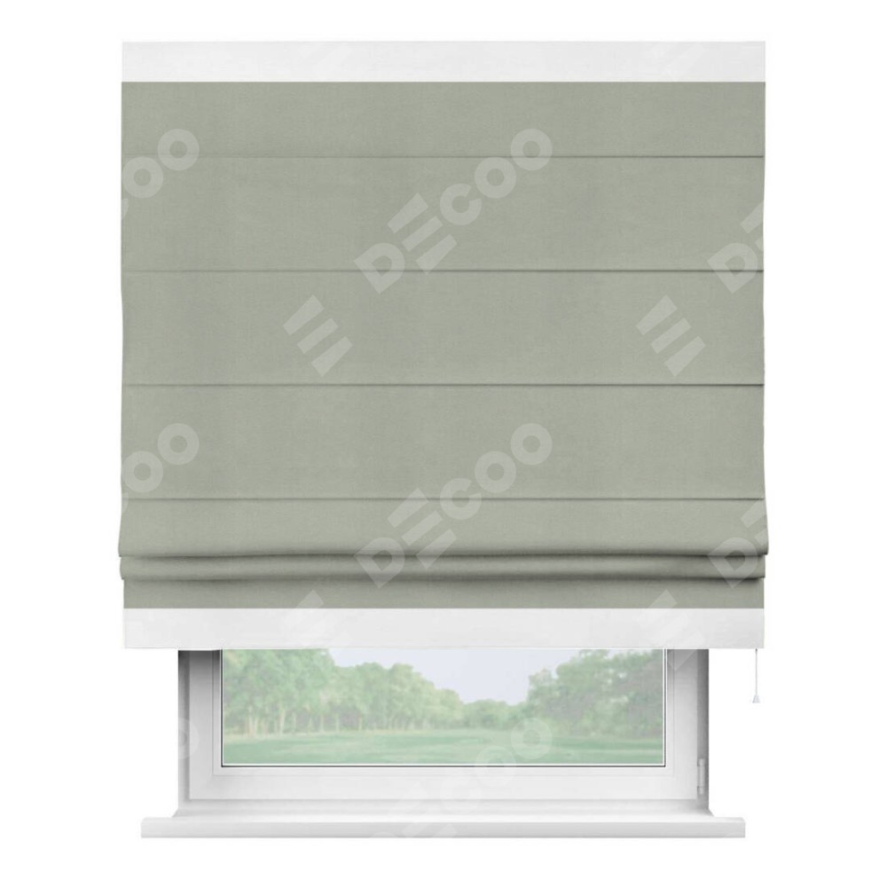 Римская штора производителя «Cortin», используется для проёма, пошита из ткани вельвет cветло-серый, артикул ткани 30981. Отделка шторы кантом «Горизонт», ткань для канта используется из вельвета разной расцветки на выбор. Имеет универсальный механизм и подходит для монтажа: на потолок, на стену и в нишу.