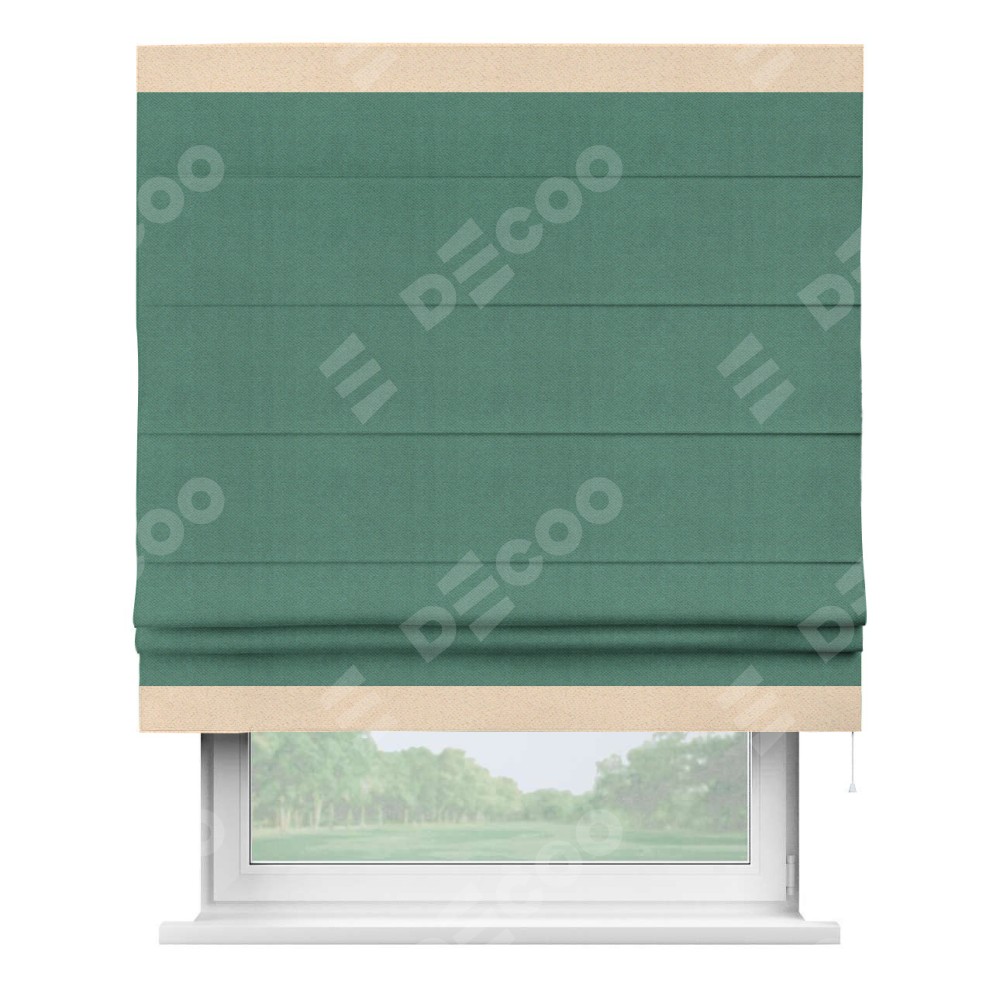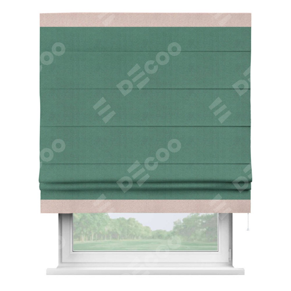 Римская штора «Кортин» с кантом Горизонт, для проема, ткань блэкаут с блеском изумрудный