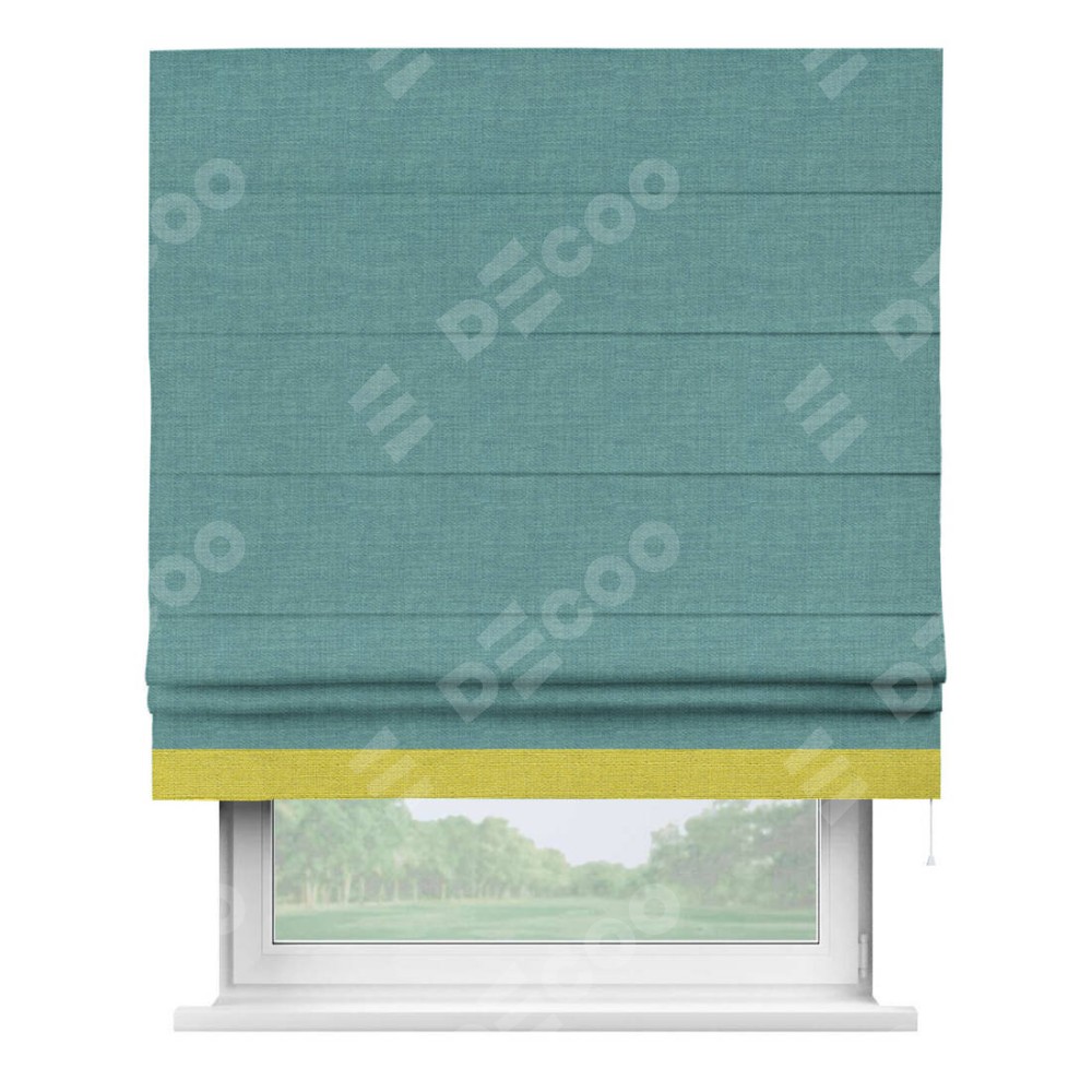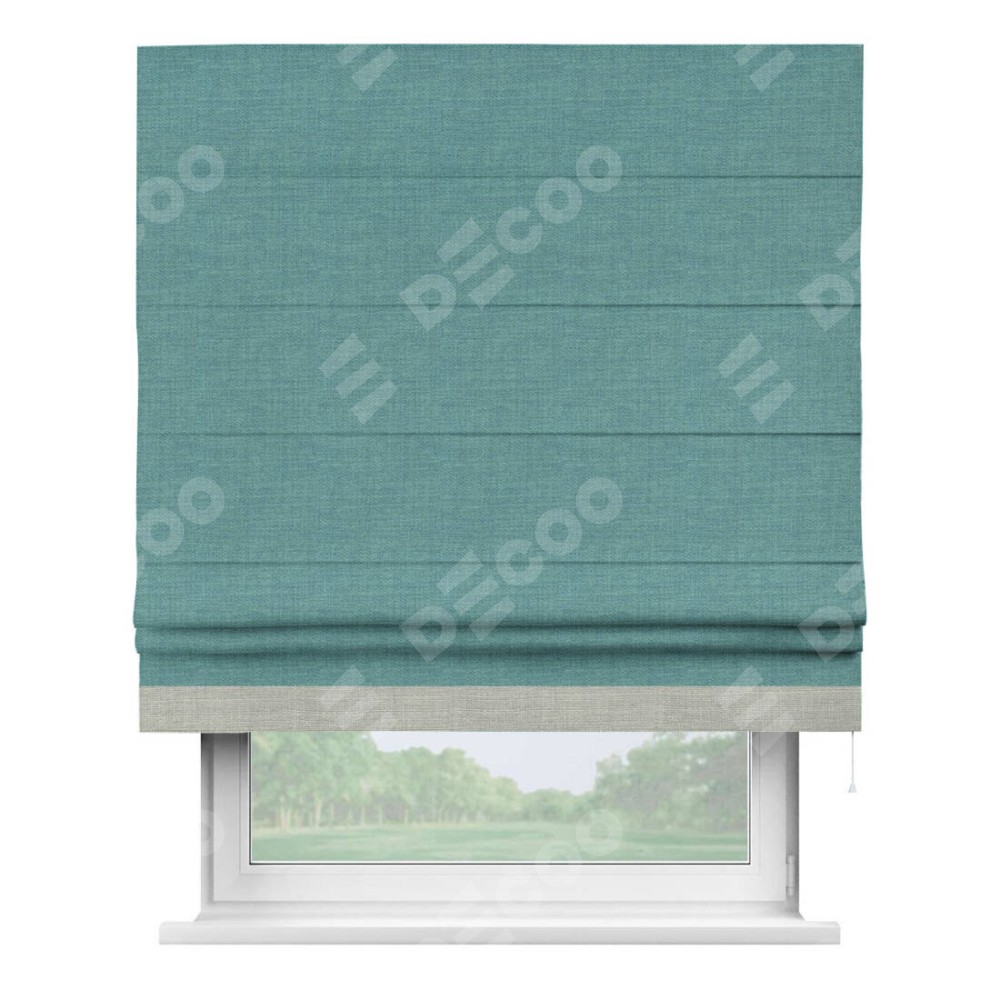 Римская штора «Кортин» с кантом Джестер, для проема, ткань лён бирюза