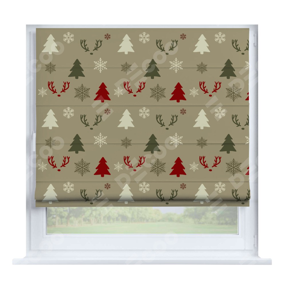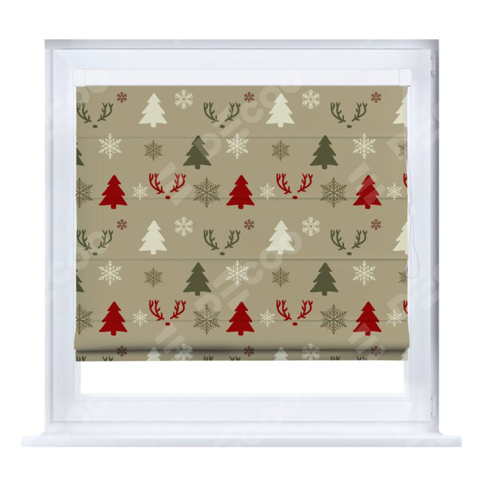 Римская штора производителя «Cortin», устанавливается на створку окна, пошита из ткани блэкаут с нанесением сублимационной печати «Гармония рождества». Штора шьётся по индивидуальным размерам, для данного типа римской шторы возможная ширина от 35 до 150 см., высота до 250 см.