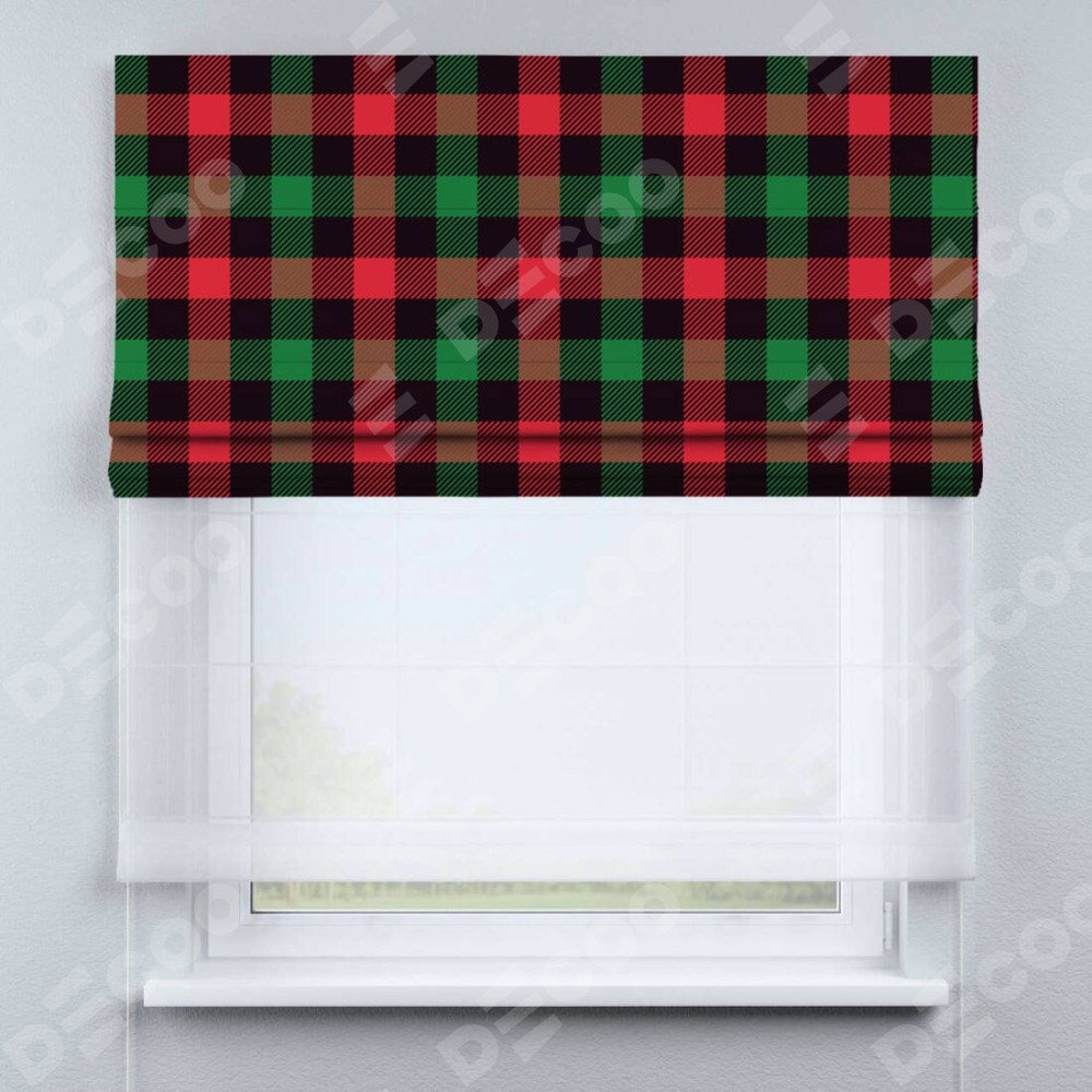 Римская штора день-ночь производителя «Cortin», используется для проёма, пошита из двух полотен, с лицевой блэкаут с нанесением сублимационной печати «Красочная клетка», вторая ткань тюль (по стандарту комплектуется тюль белого цвета артикул V-01). Имеет универсальный механизм и подходит для монтажа: на потолок, на стену и в нишу.