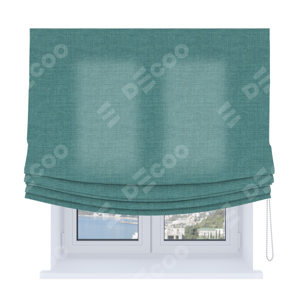 Римская штора Soft с мягкими складками, ткань лён бирюза