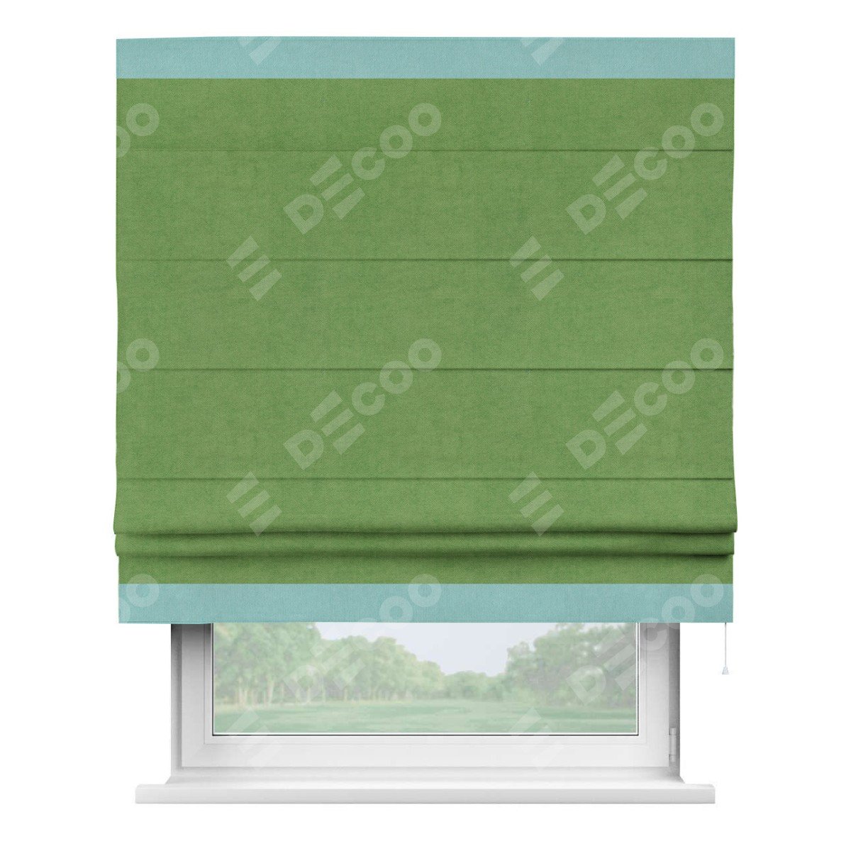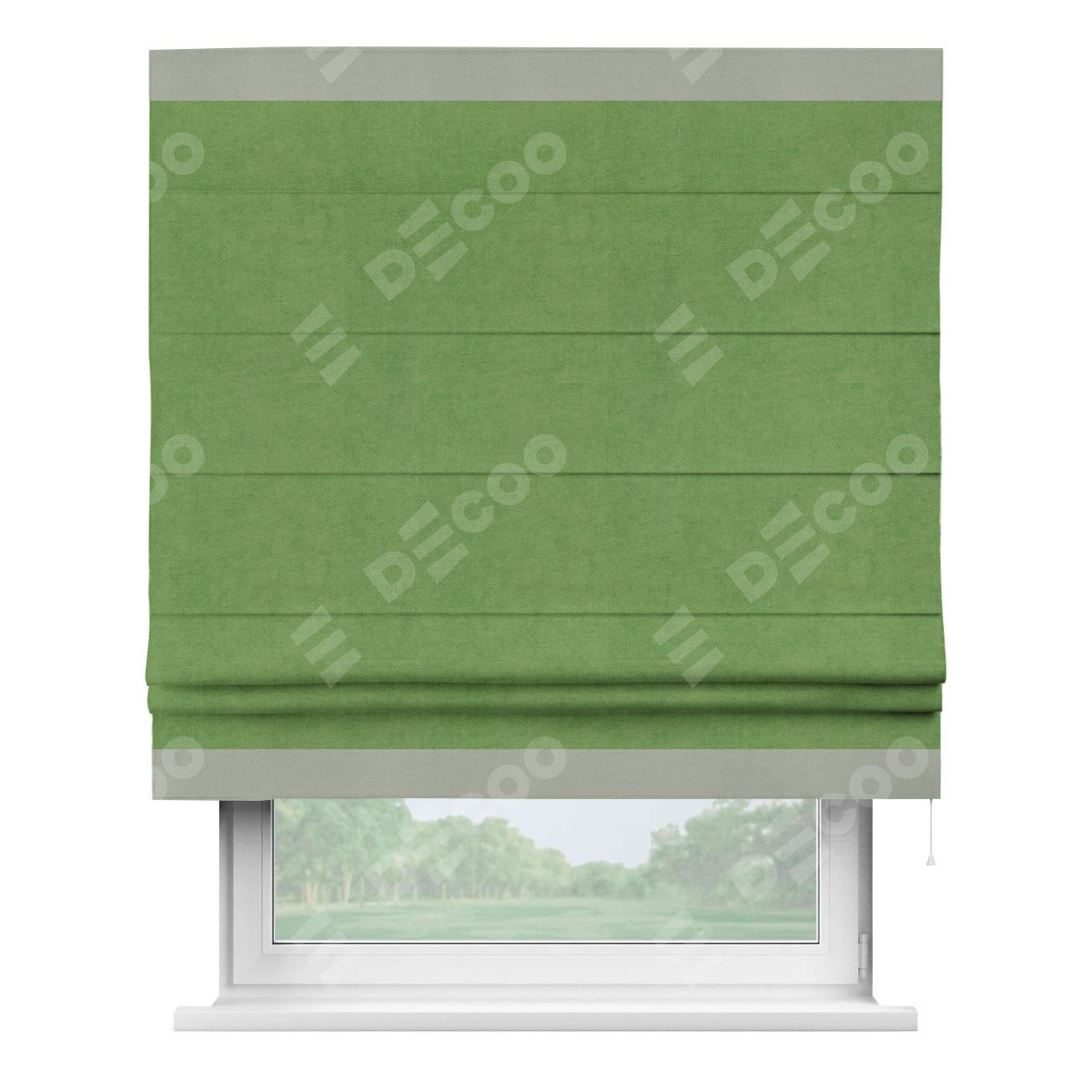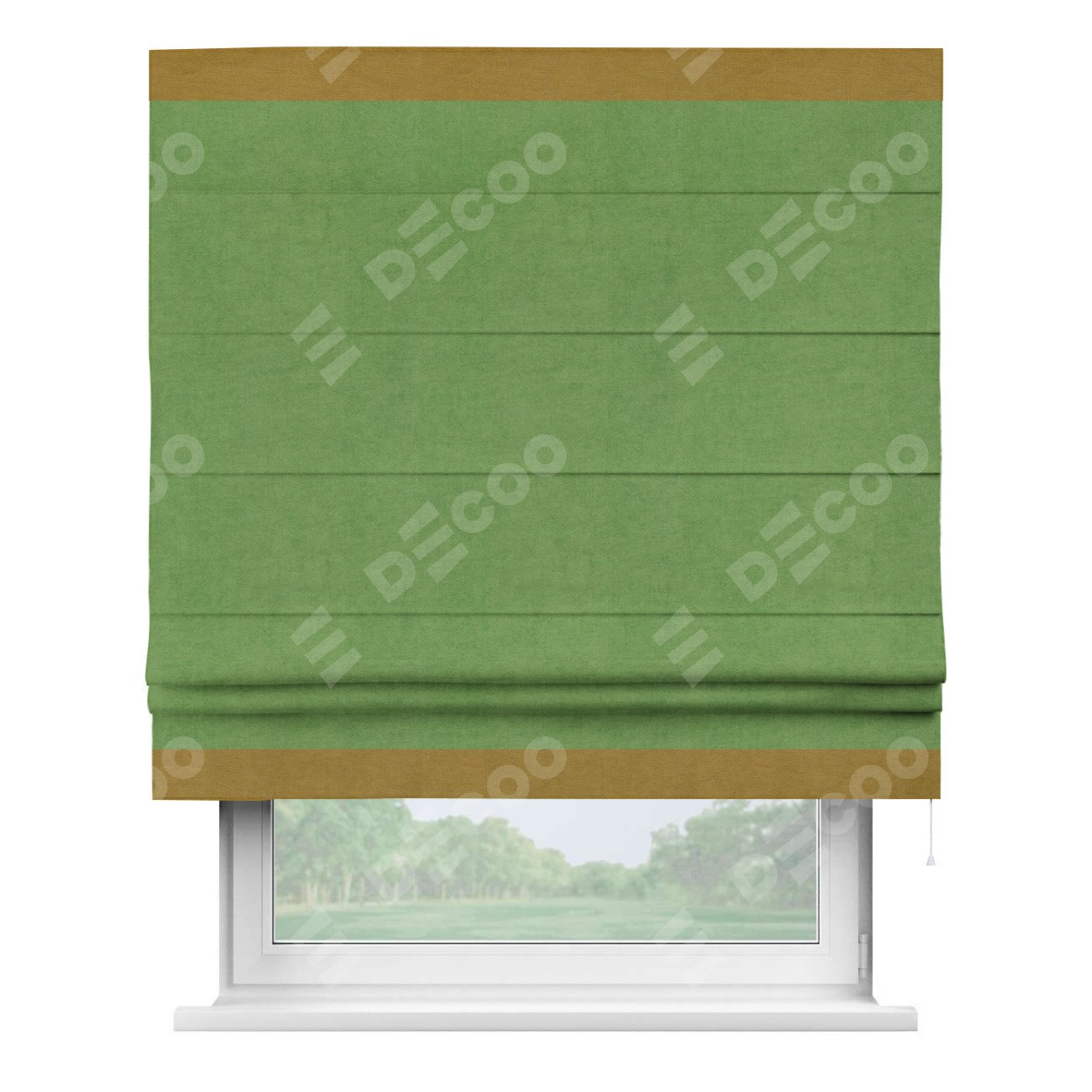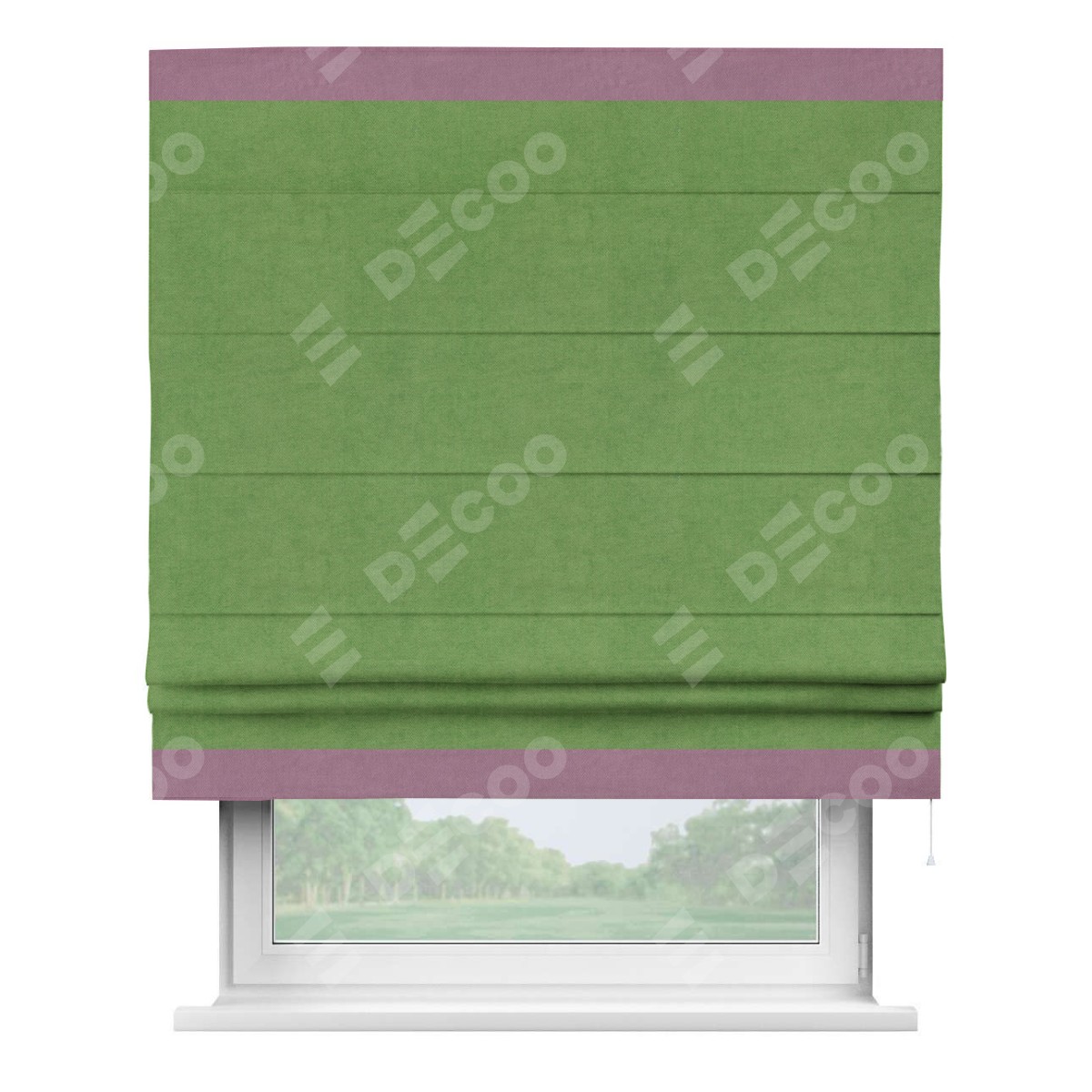 Римская штора «Кортин» с кантом Горизонт, для проема, ткань вельвет салатовый