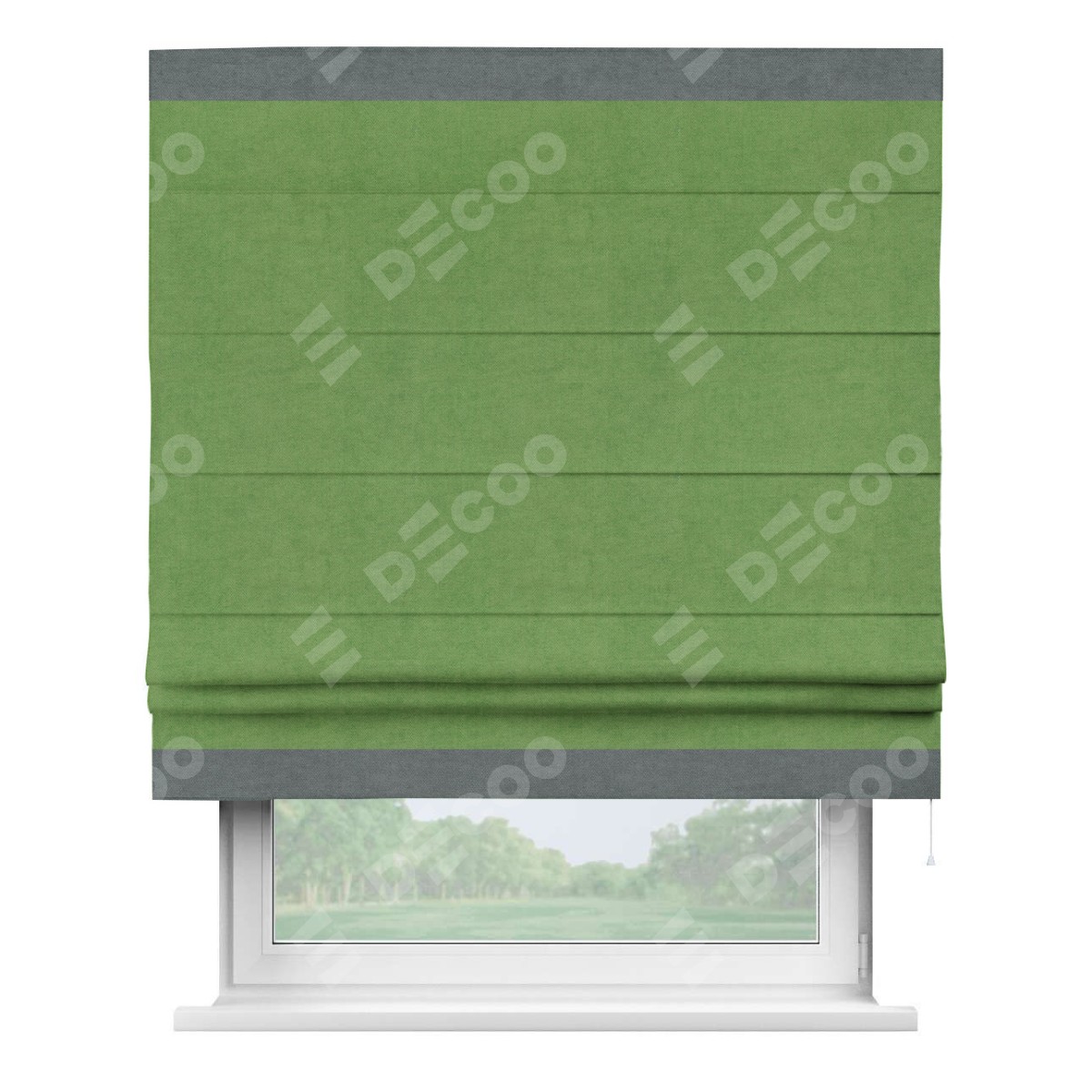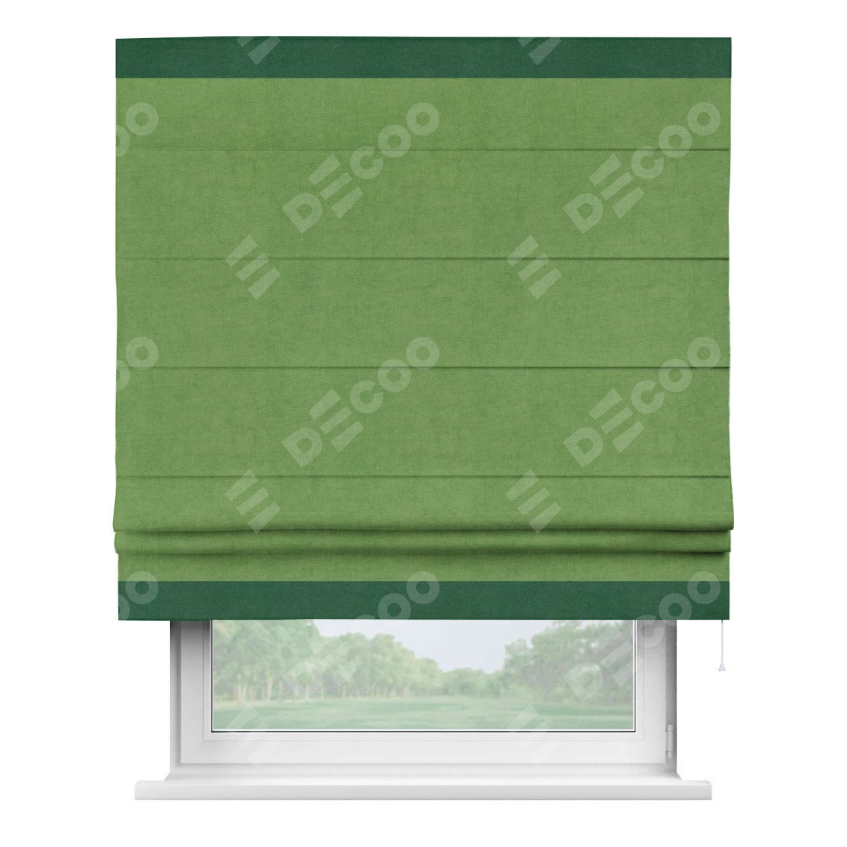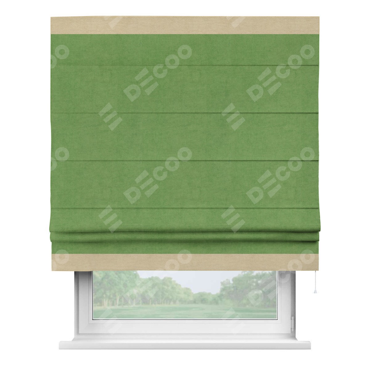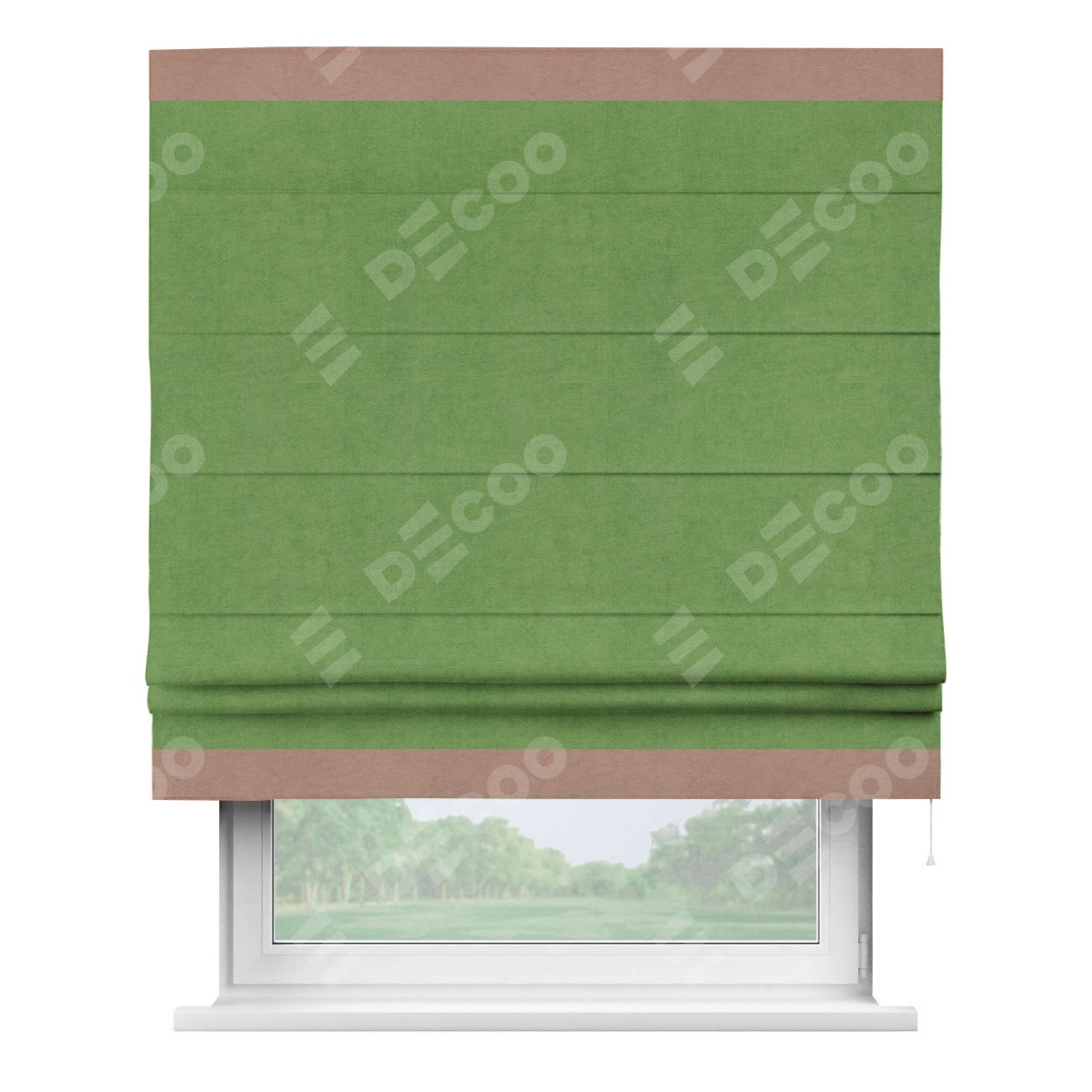 Римская штора «Кортин» с кантом Горизонт, для проема, ткань вельвет салатовый