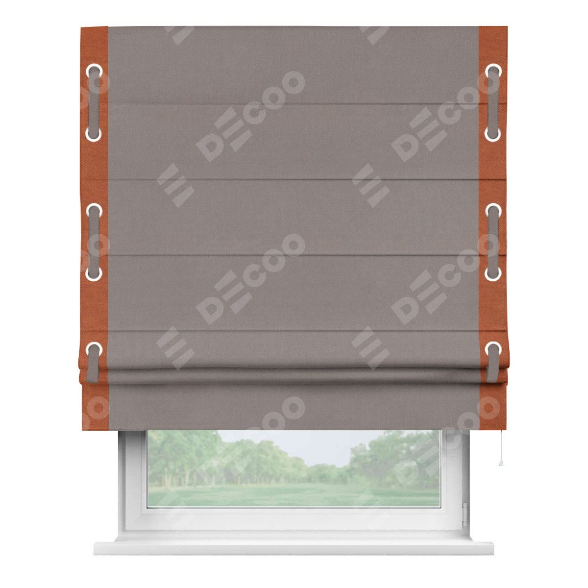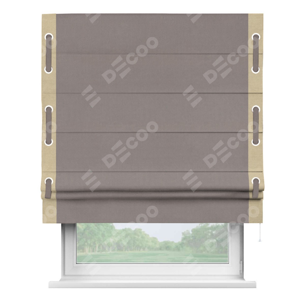 Римская штора «Кортин» с кантом Стрим Дуо (люверсы с пояском), для проема, ткань вельвет темно-бежевый