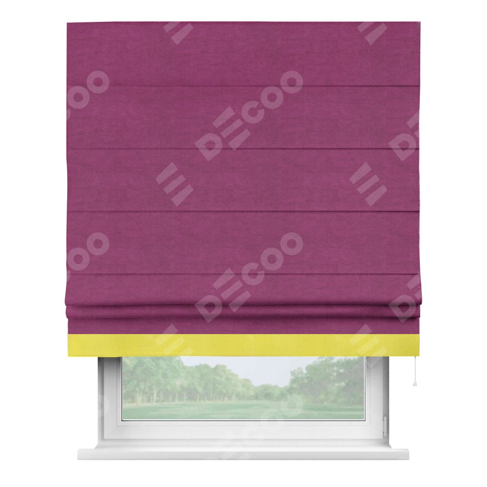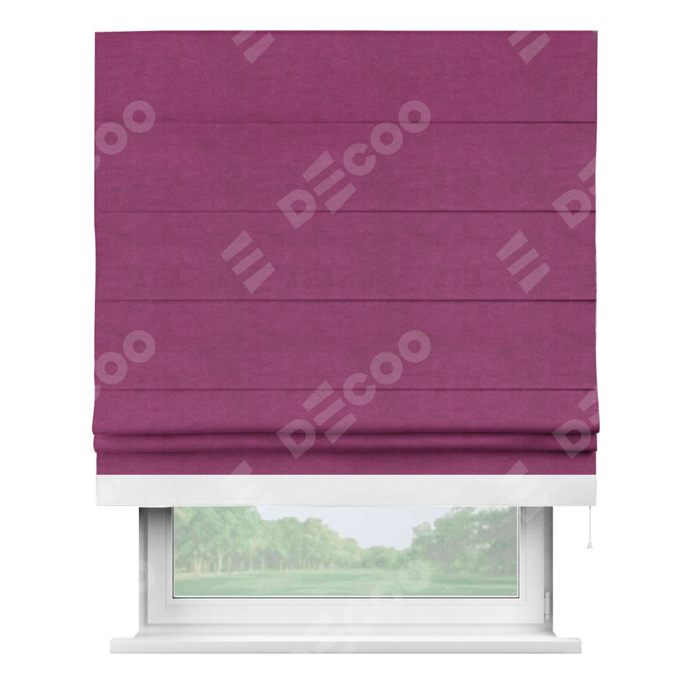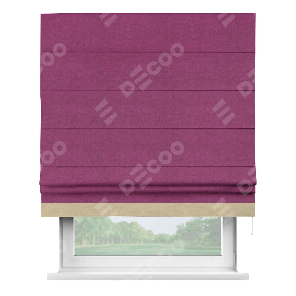 Римская штора «Кортин» с кантом Джестер, для проема, ткань вельвет фиолетовый