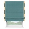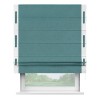 Римская штора производителя «Cortin», используется для проёма, пошита из ткани лён бирюзовый, артикул 53436. Отделка шторы кантом «Стрим Дуо» на кантах расположены люверсы с пояском, ткань для канта используется из льна разной расцветки на выбор. Ткань для пояска обычно используется из основной ткани шторы, а так же можно сделать из любой расцветки по желанию. Имеет универсальный механизм и подходит для монтажа: на потолок, на стену и в нишу.