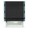 Римская штора производителя «Cortin», используется для проёма, пошита из ткани лён черный, артикул 85927. Отделка шторы кантом «Стрим Дуо» на кантах расположены люверсы с пояском, ткань для канта используется из льна разной расцветки на выбор. Ткань для пояска обычно используется из основной ткани шторы, а так же можно сделать из любой расцветки по желанию. Имеет универсальный механизм и подходит для монтажа: на потолок, на стену и в нишу.