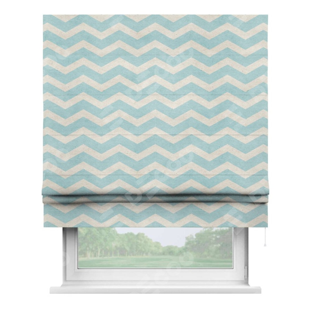 Римская штора «Кортин» для проема «Голубой шеврон»