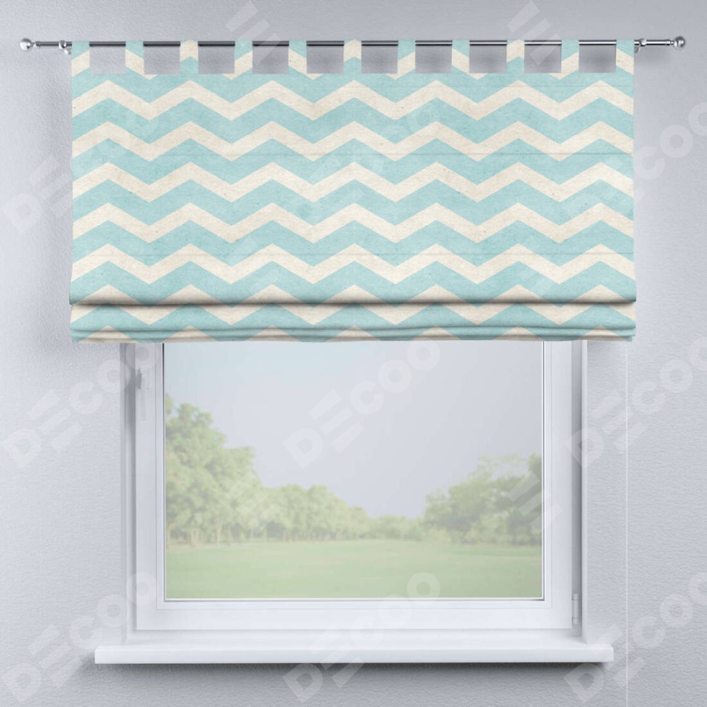 Римская штора производителя «Cortin», используется для проёма, пошита из ткани блэкаут с нанесением сублимационной печати «Голубой шеврон». Данная модель пошита на петлях, комплектуется на выбор круглым карнизом и подходит для монтажа на стену. Римская штора на петлях имеет простую систему регулировки высоты, отличительным преимуществом данной модели является простой способ монтажа. Достаточно повесить ее на трубу и штора готова!