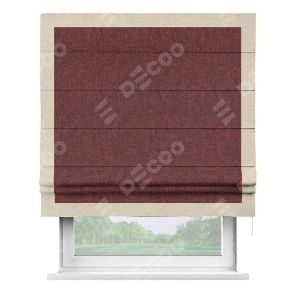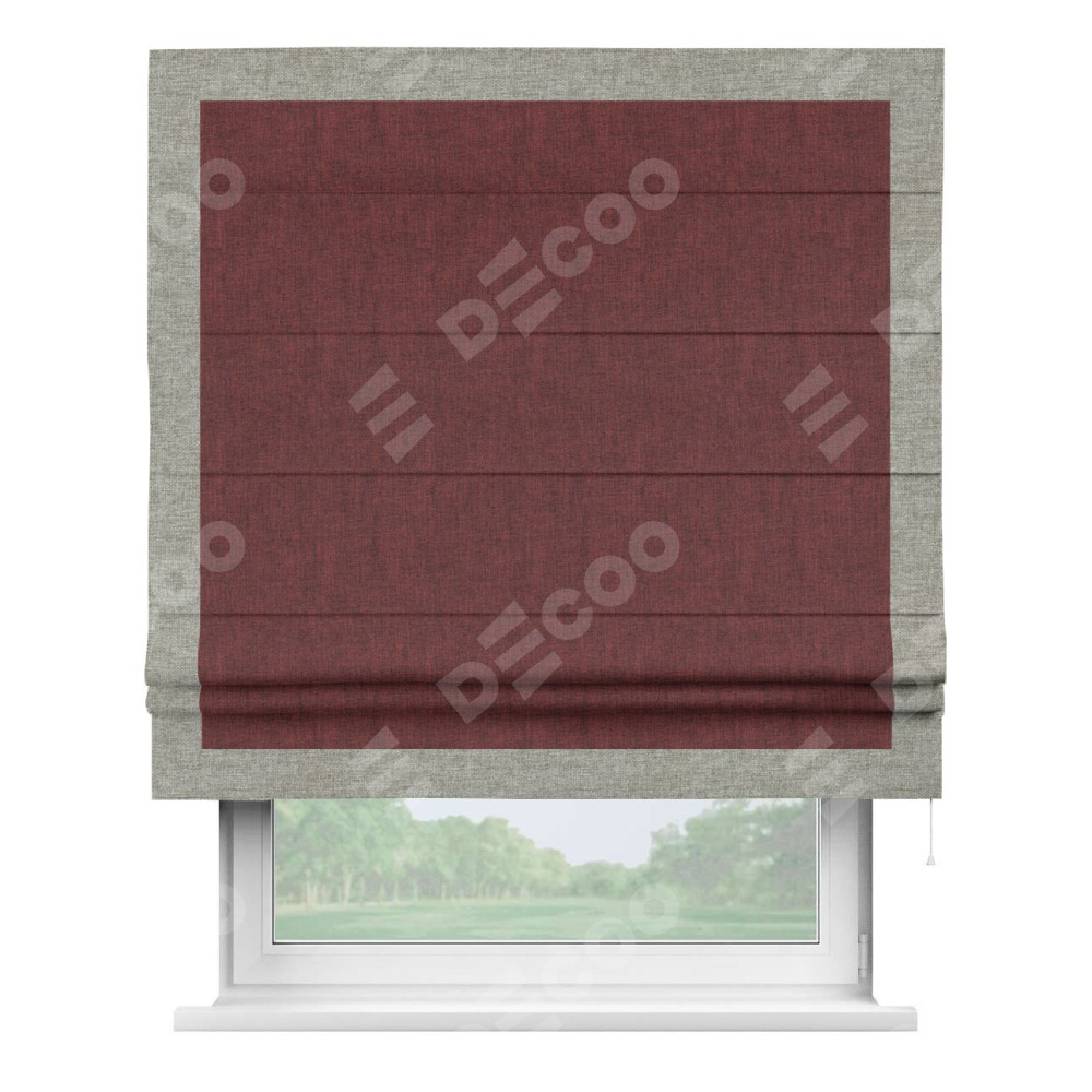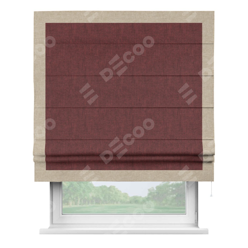 Римская штора «Кортин» с кантом Чесс, для проема, ткань лён кашемир бордовый