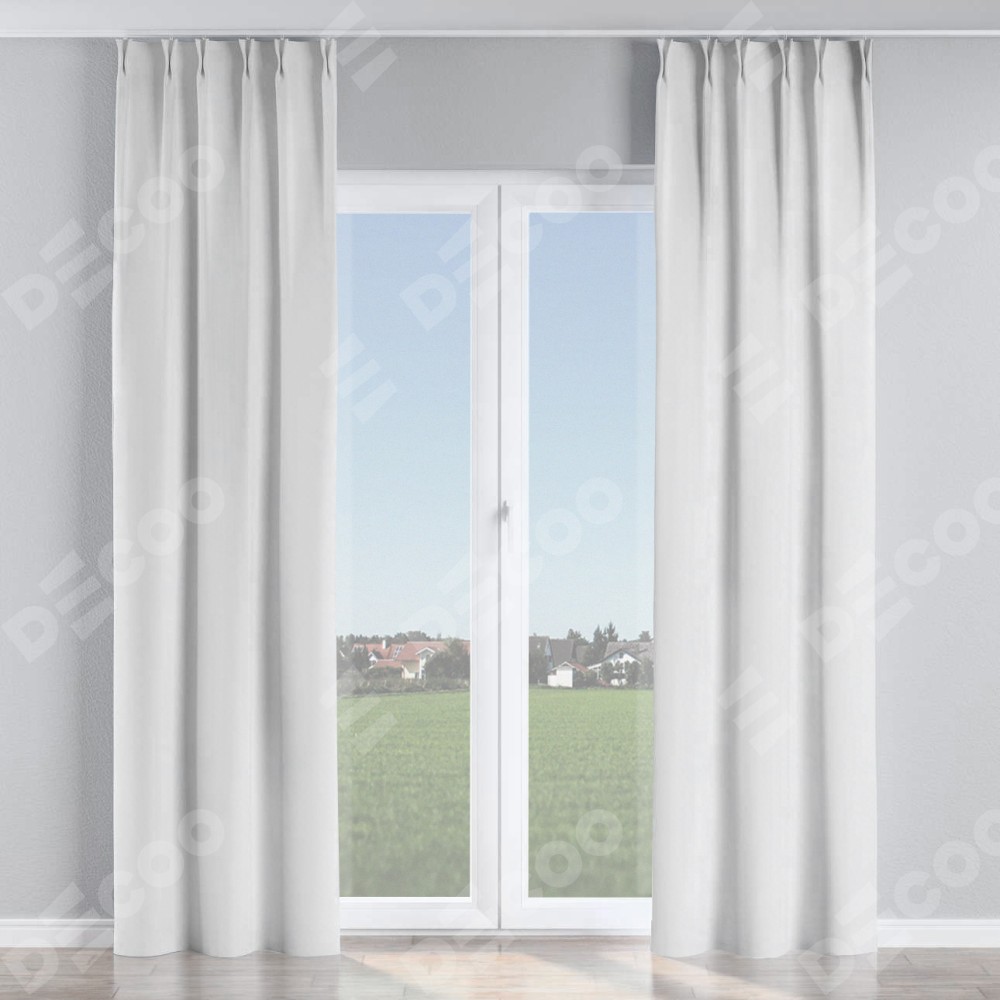 Комплект прямых штор, от производителя «Cortin», пошиты из ткани вельвет белоснежный, артикул ткани 19192. С изнаночной стороны в верхней части штор пристрачивается шторная лента с декоративными складками «Кустик». Для создания элегантных складок прямые шторы шьются по стандарту с коэффициентом 1:2 (на 100 см. ширины проёма 200 см. ширины ткани).