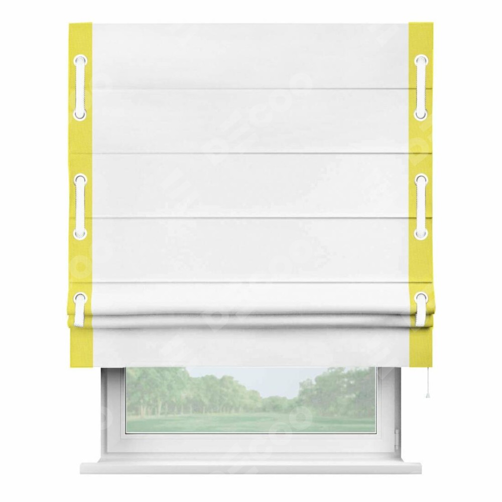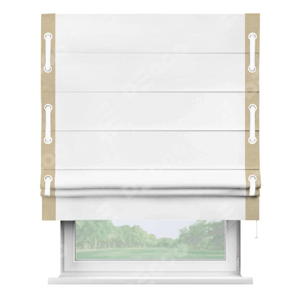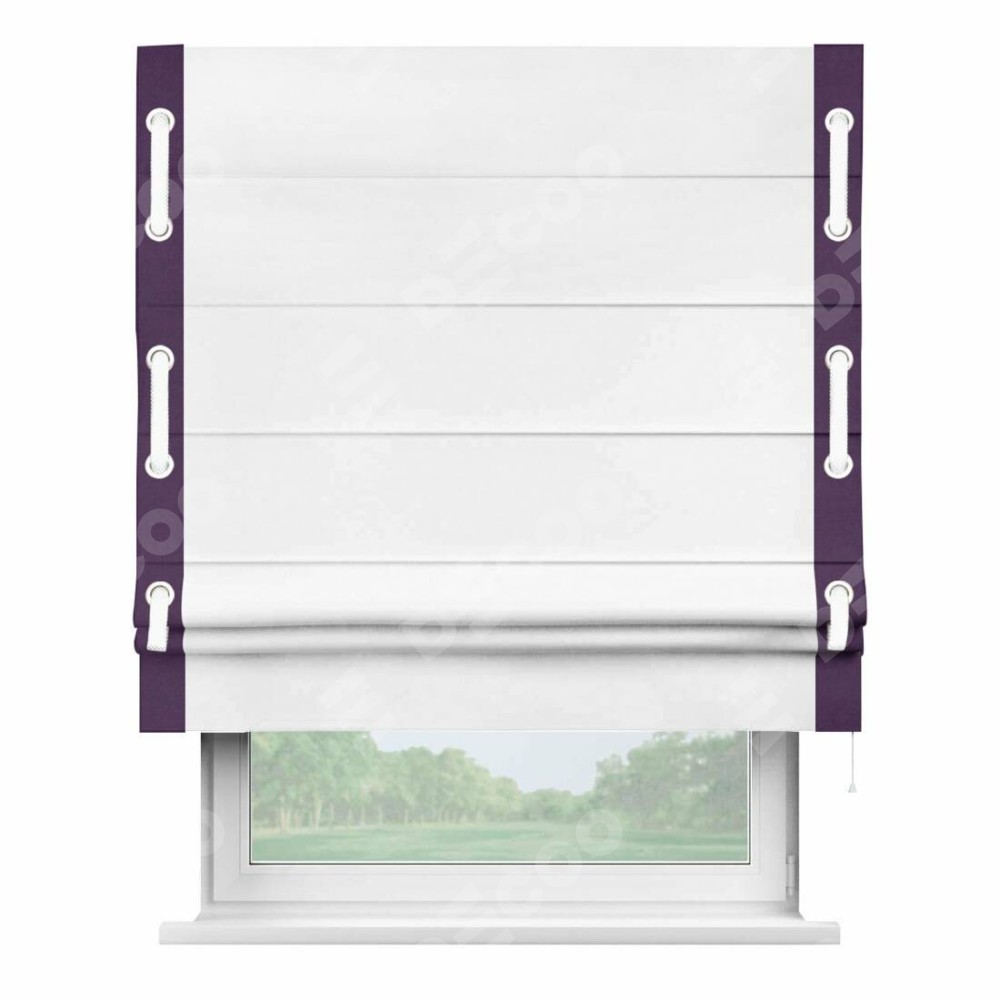Римская штора «Кортин» с кантом Стрим Дуо (люверсы с пояском), для проема, ткань вельвет белоснежный