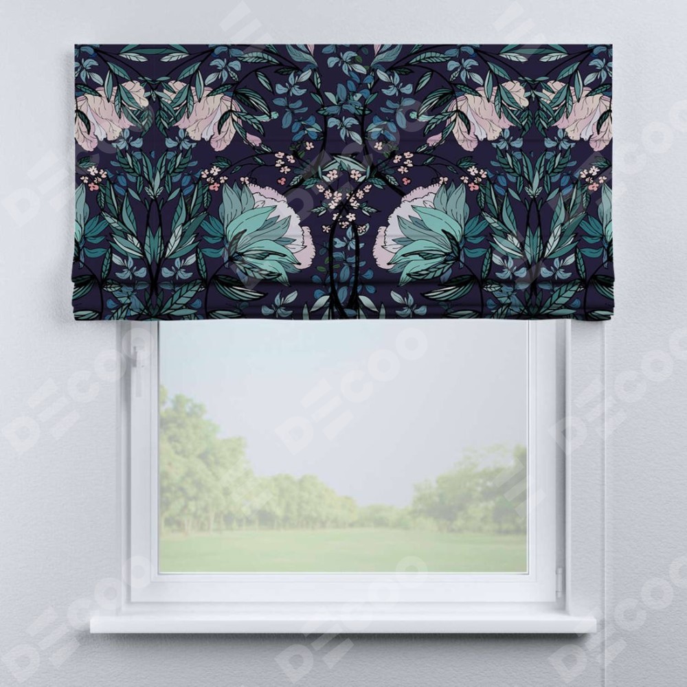 Римская штора «Кортин» для проема «Цветочный индиго»