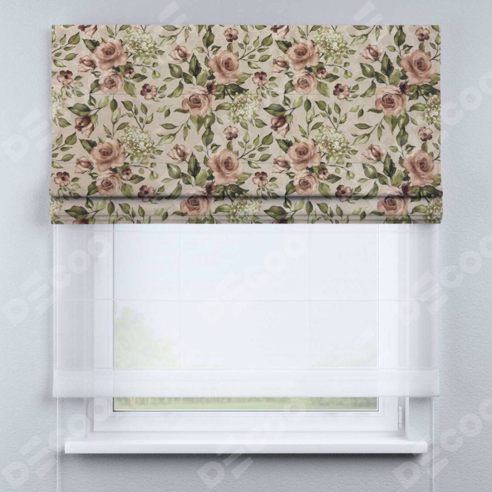 Римская штора «Кортин» день-ночь, ткань «Розы бежевые»