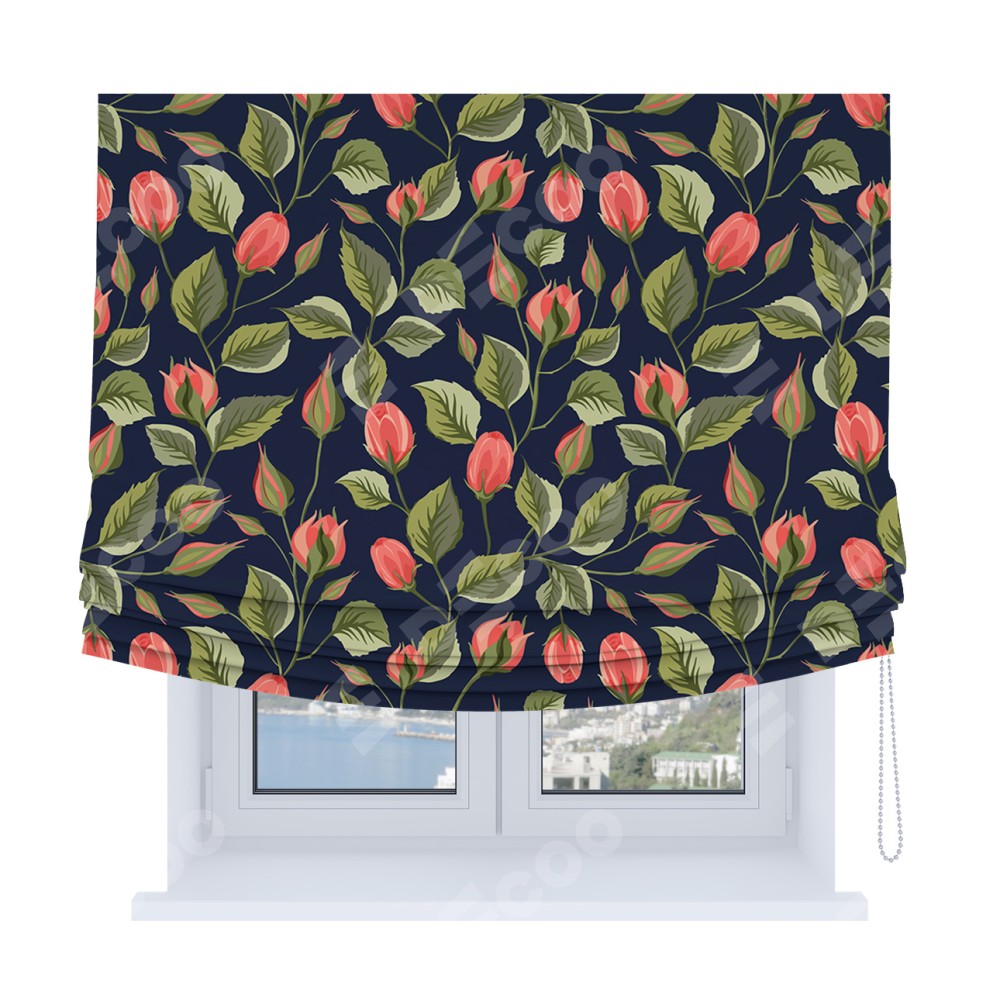 Римская штора Soft производителя «Cortin», используется для проёма, пошита из ткани блэкаут с нанесением сублимационной печати «Красная роза». Имеет универсальный механизм и подходит для монтажа: на потолок, на стену и в нишу. В отличие от стандартных римских штор, римская штора Soft не имеет горизонтальных вставок и нижнего отвеса. Это позволяет ткани произвольно драпироваться в свободные мягкие складки.