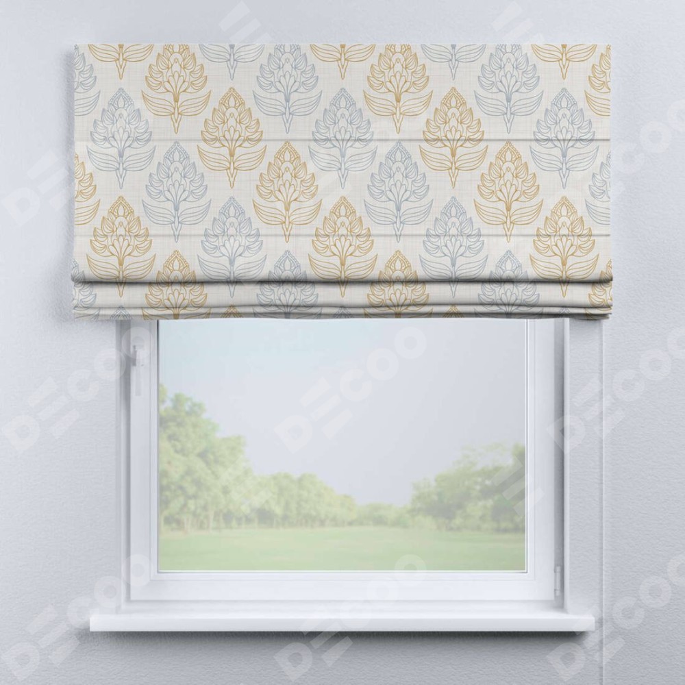 Римская штора производителя «Cortin», используется для проёма, пошита из ткани блэкаут с нанесением сублимационной печати «Цветочный медальон». Имеет универсальный механизм и подходит для монтажа: на потолок, на стену и в нишу.