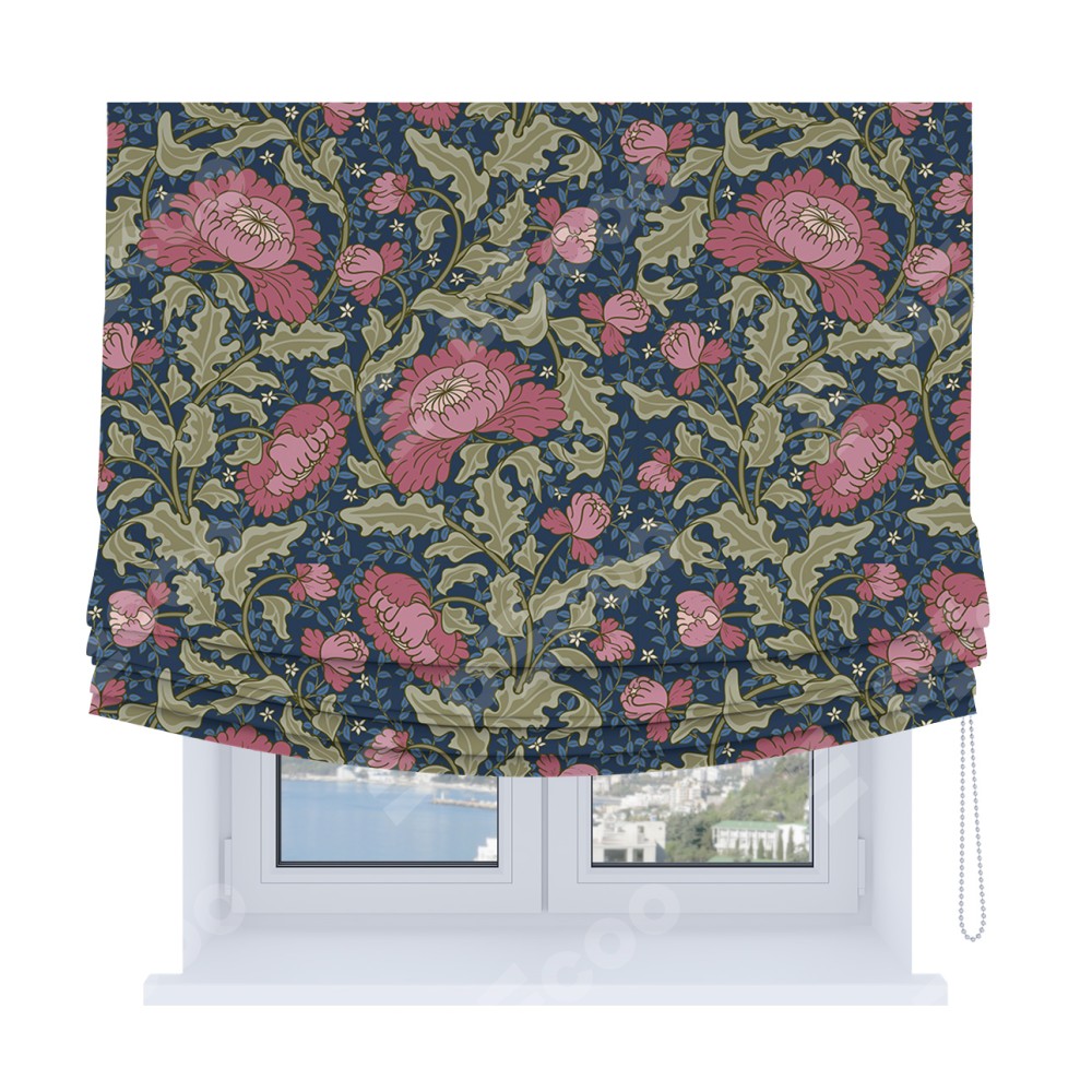 Римская штора Soft производителя «Cortin», используется для проёма, пошита из ткани блэкаут с нанесением сублимационной печати «Розовые цветы». Имеет универсальный механизм и подходит для монтажа: на потолок, на стену и в нишу. В отличие от стандартных римских штор, римская штора Soft не имеет горизонтальных вставок и нижнего отвеса. Это позволяет ткани произвольно драпироваться в свободные мягкие складки.