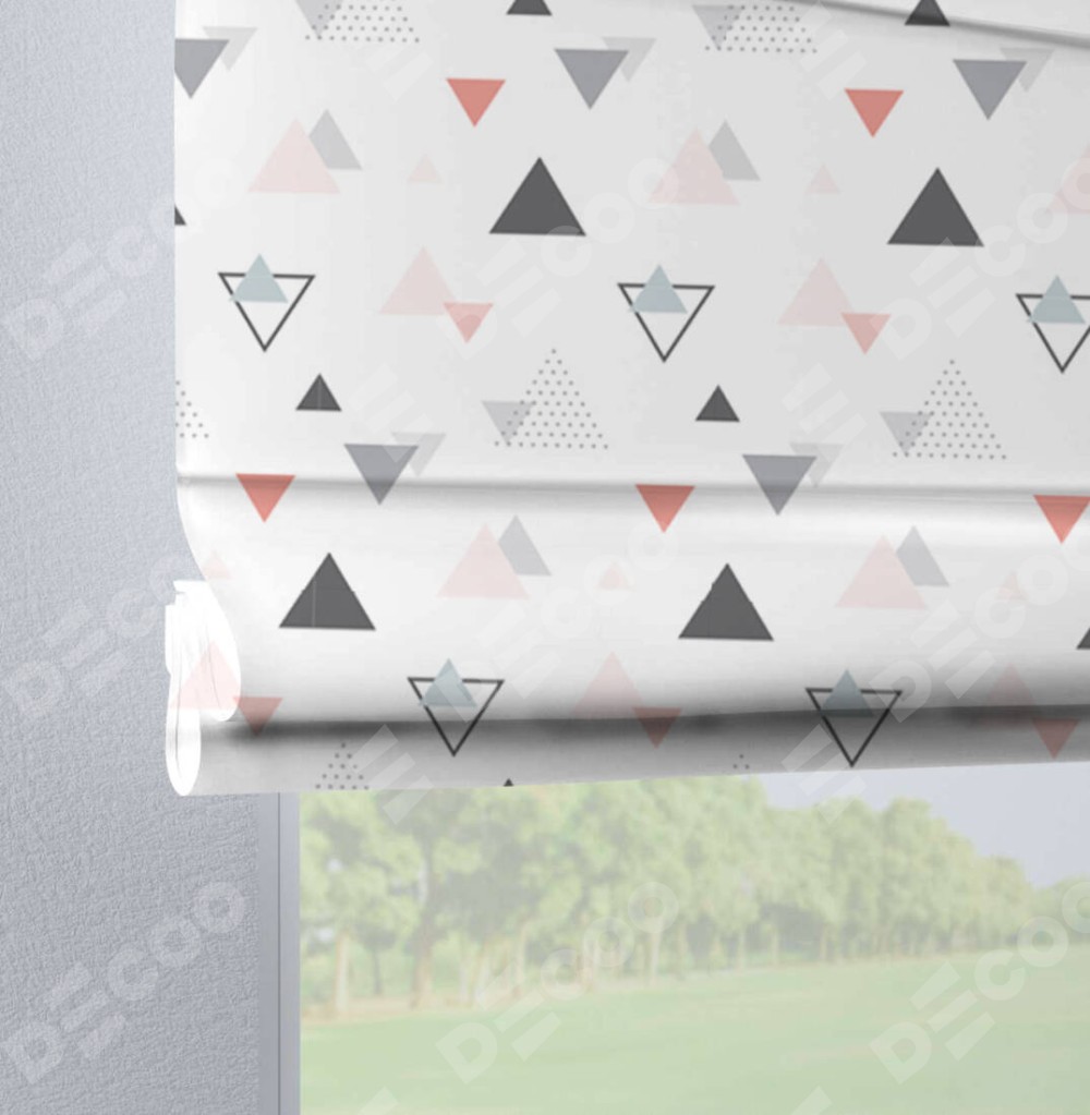 Римская штора производителя «Cortin», используется для проёма, пошита из ткани блэкаут с нанесением сублимационной печати «Дождь из треугольников». Данная модель пошита на петлях, комплектуется на выбор круглым карнизом и подходит для монтажа на стену. Римская штора на петлях имеет простую систему регулировки высоты, отличительным преимуществом данной модели является простой способ монтажа. Достаточно повесить ее на трубу и штора готова!