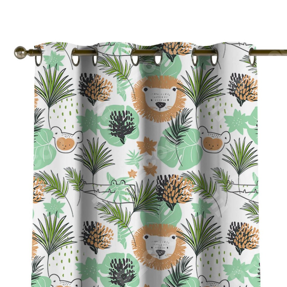 Комплект прямых штор, от производителя «Cortin», пошиты из ткани блэкаут с нанесением сублимационной печати «Животные из джунглей». Данная модель пошита на люверсах, комплектуется на выбор круглым карнизом и подходит для монтажа на стену или потолок. Прямые шторы на люверсах шьются по стандарту с коэффициентом 1/2 (на 100 см. ширины проёма 200 см. ширины ткани), отличительным преимуществом данной модели является простой способ монтажа. Достаточно повесить ее на трубу и штора готова!