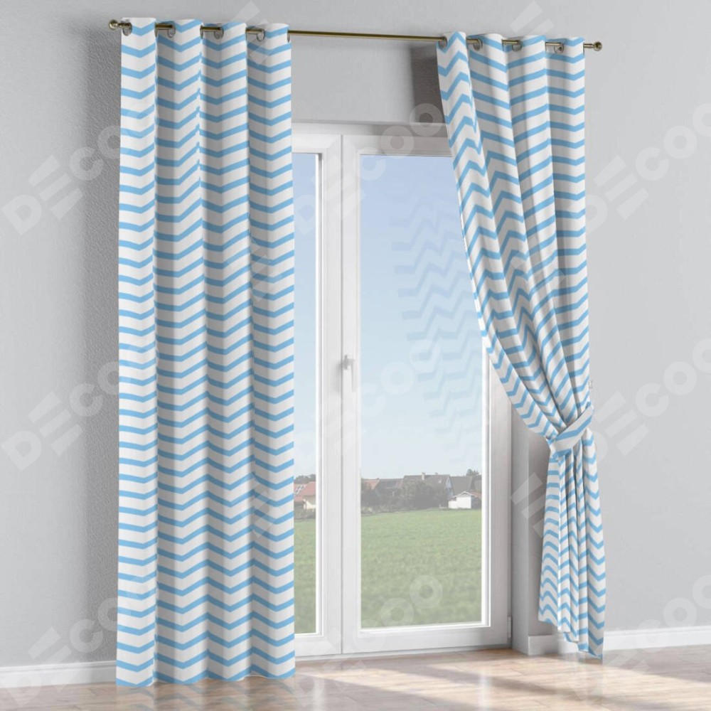 Комплект прямых штор, от производителя «Cortin», пошиты из ткани блэкаут с нанесением сублимационной печати «Зигзаг мелкий». Данная модель пошита на люверсах, комплектуется на выбор круглым карнизом и подходит для монтажа на стену или потолок. Прямые шторы на люверсах шьются по стандарту с коэффициентом 1/2 (на 100 см. ширины проёма 200 см. ширины ткани), отличительным преимуществом данной модели является простой способ монтажа. Достаточно повесить ее на трубу и штора готова!