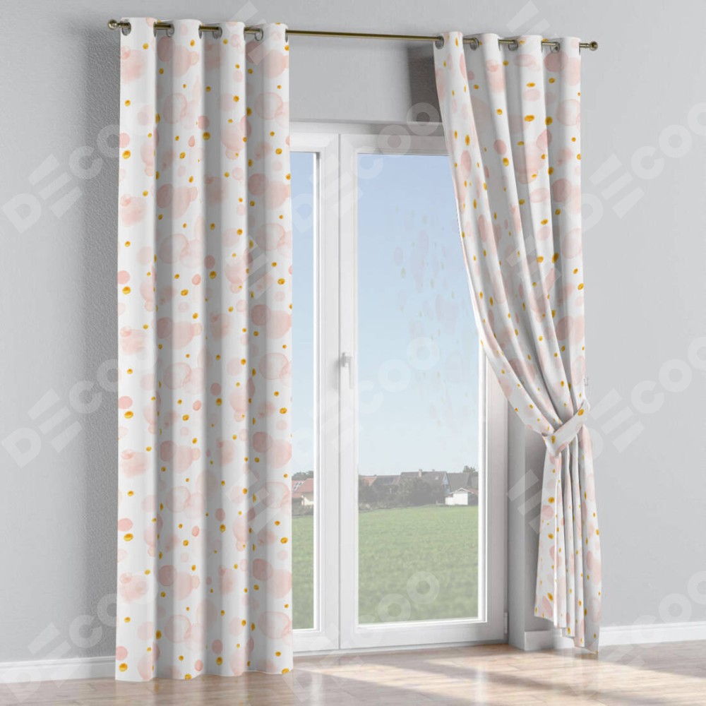 Комплект прямых штор, от производителя «Cortin», пошиты из ткани блэкаут с нанесением сублимационной печати «Круги и точки». Данная модель пошита на люверсах, комплектуется на выбор круглым карнизом и подходит для монтажа на стену или потолок. Прямые шторы на люверсах шьются по стандарту с коэффициентом 1/2 (на 100 см. ширины проёма 200 см. ширины ткани), отличительным преимуществом данной модели является простой способ монтажа. Достаточно повесить ее на трубу и штора готова!