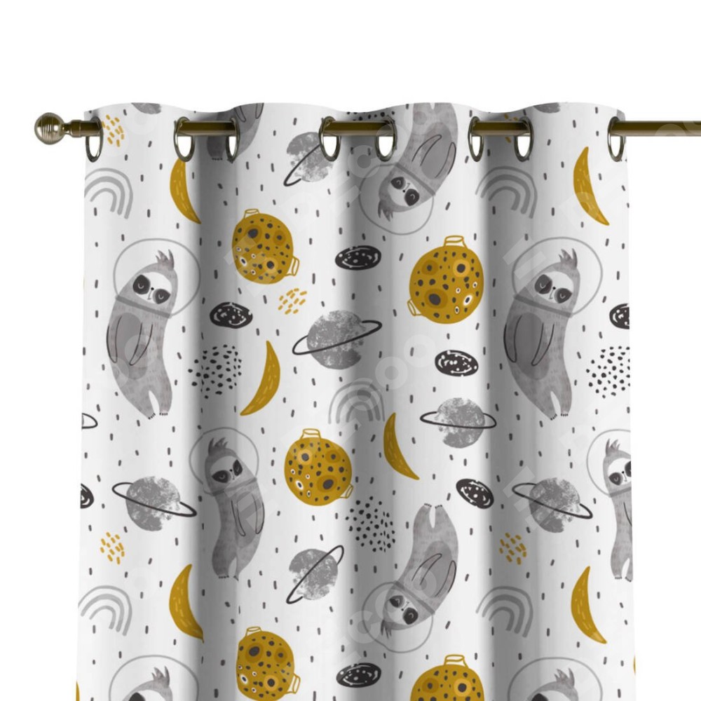 Комплект прямых штор, от производителя «Cortin», пошиты из ткани блэкаут с нанесением сублимационной печати «Ленивец в шлеме». Данная модель пошита на люверсах, комплектуется на выбор круглым карнизом и подходит для монтажа на стену или потолок. Прямые шторы на люверсах шьются по стандарту с коэффициентом 1/2 (на 100 см. ширины проёма 200 см. ширины ткани), отличительным преимуществом данной модели является простой способ монтажа. Достаточно повесить ее на трубу и штора готова!