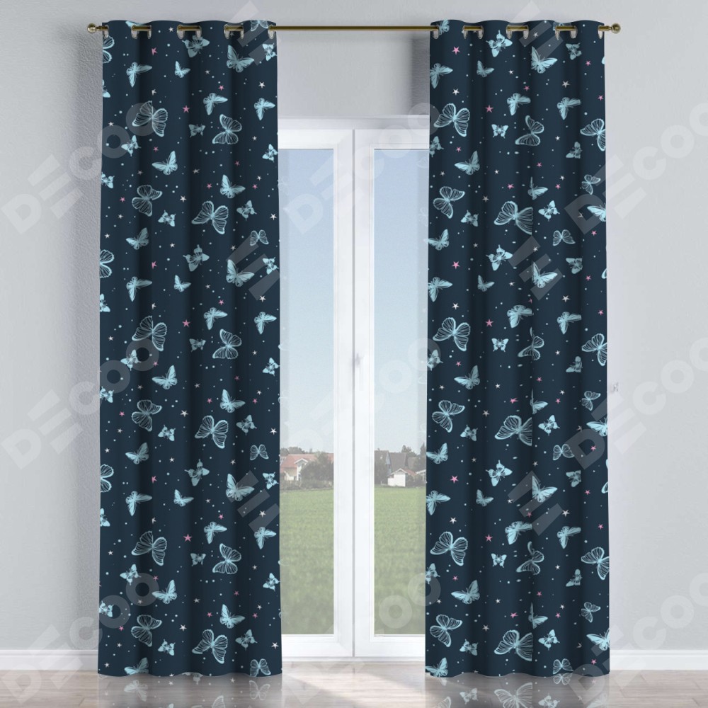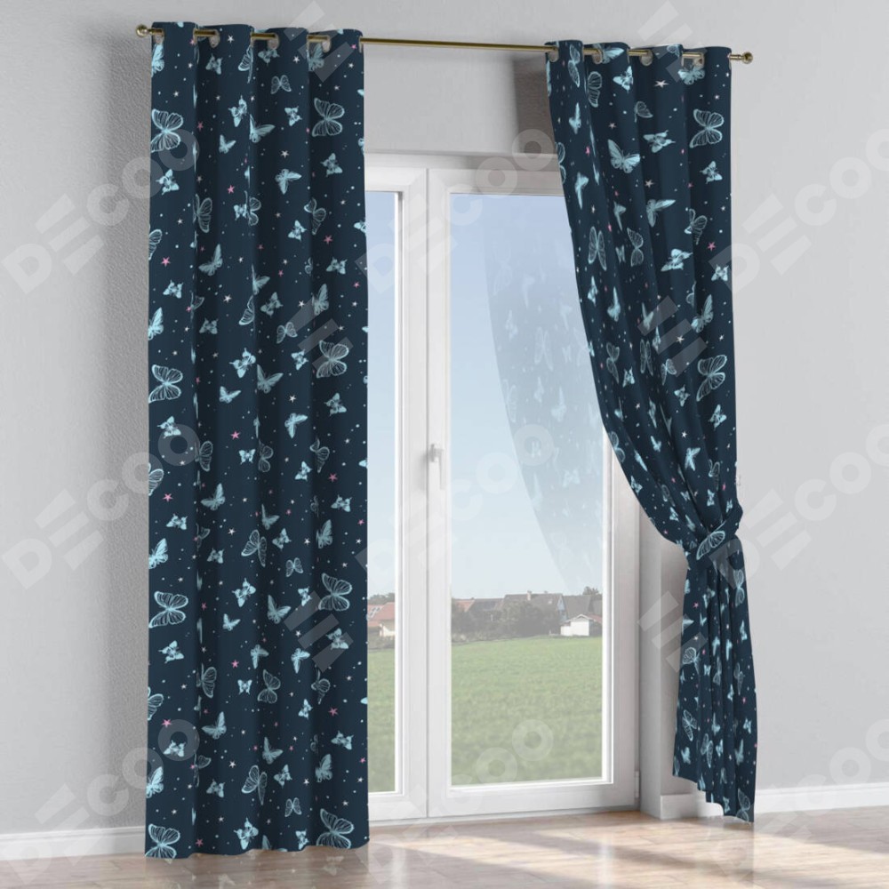 Комплект прямых штор, от производителя «Cortin», пошиты из ткани блэкаут с нанесением сублимационной печати «Неоновые бабочки». Данная модель пошита на люверсах, комплектуется на выбор круглым карнизом и подходит для монтажа на стену или потолок. Прямые шторы на люверсах шьются по стандарту с коэффициентом 1/2 (на 100 см. ширины проёма 200 см. ширины ткани), отличительным преимуществом данной модели является простой способ монтажа. Достаточно повесить ее на трубу и штора готова!