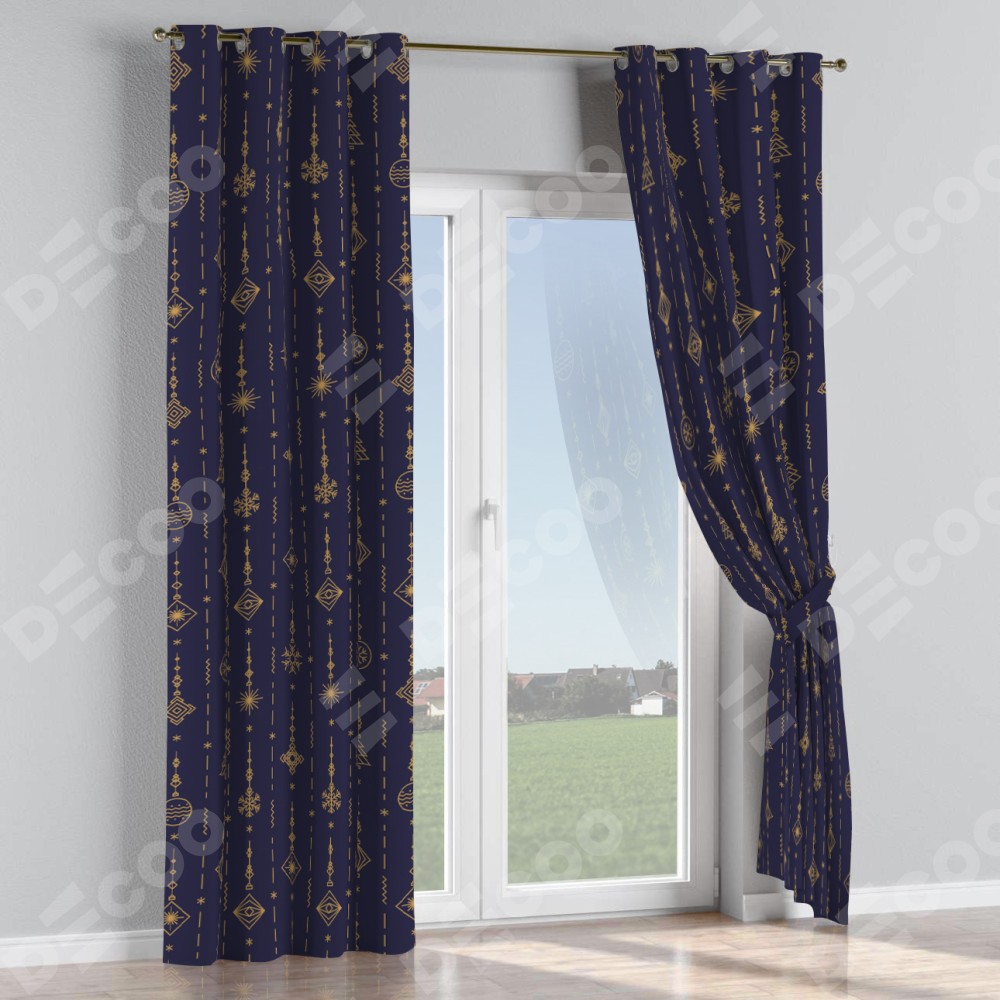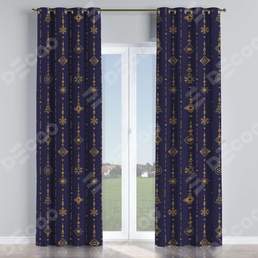 Комплект прямых штор, от производителя «Cortin», пошиты из ткани блэкаут с нанесением сублимационной печати «Сияние гирлянд». Данная модель пошита на люверсах, комплектуется на выбор круглым карнизом и подходит для монтажа на стену или потолок. Прямые шторы на люверсах шьются по стандарту с коэффициентом 1/2 (на 100 см. ширины проёма 200 см. ширины ткани), отличительным преимуществом данной модели является простой способ монтажа. Достаточно повесить ее на трубу и штора готова!