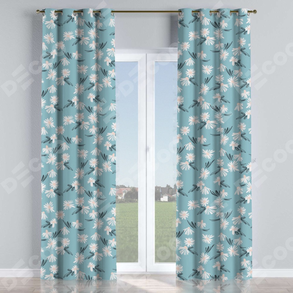 Комплект прямых штор, от производителя «Cortin», пошиты из ткани блэкаут с нанесением сублимационной печати «Чудесные ромашки». Данная модель пошита на люверсах, комплектуется на выбор круглым карнизом и подходит для монтажа на стену или потолок. Прямые шторы на люверсах шьются по стандарту с коэффициентом 1/2 (на 100 см. ширины проёма 200 см. ширины ткани), отличительным преимуществом данной модели является простой способ монтажа. Достаточно повесить ее на трубу и штора готова!