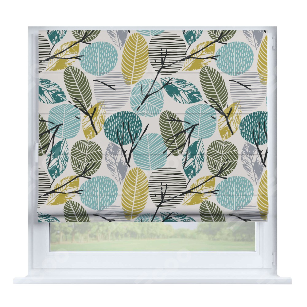Римская штора производителя «Cortin», устанавливается на створку окна, пошита из ткани блэкаут с нанесением сублимационной печати «Ботанический сад». Штора шьётся по индивидуальным размерам, для данного типа римской шторы возможная ширина от 35 до 150 см., высота до 250 см.