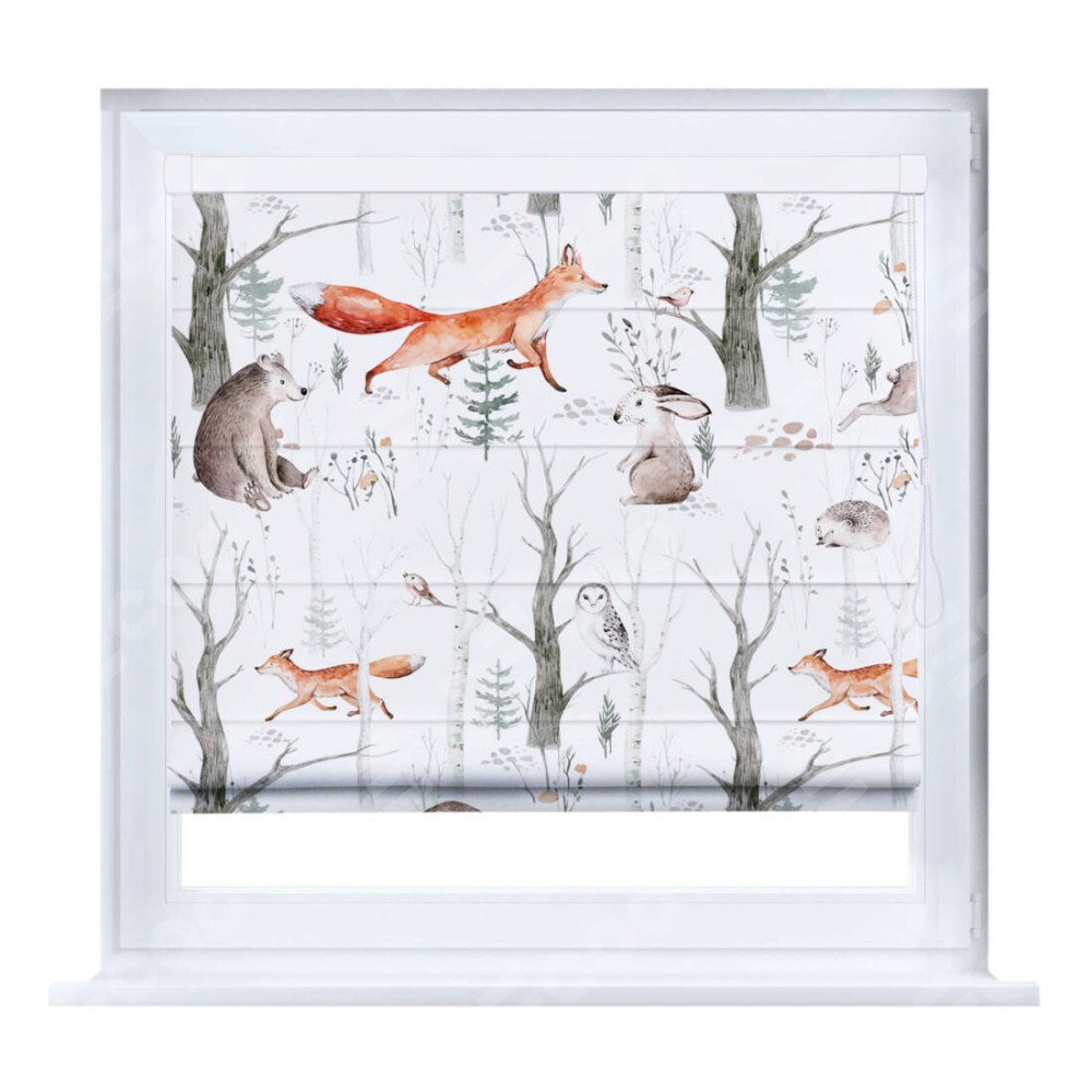 Римская штора производителя «Cortin», устанавливается на створку окна, пошита из ткани блэкаут с нанесением сублимационной печати «Лесной питомник». Штора шьётся по индивидуальным размерам, для данного типа римской шторы возможная ширина от 35 до 150 см., высота до 250 см.