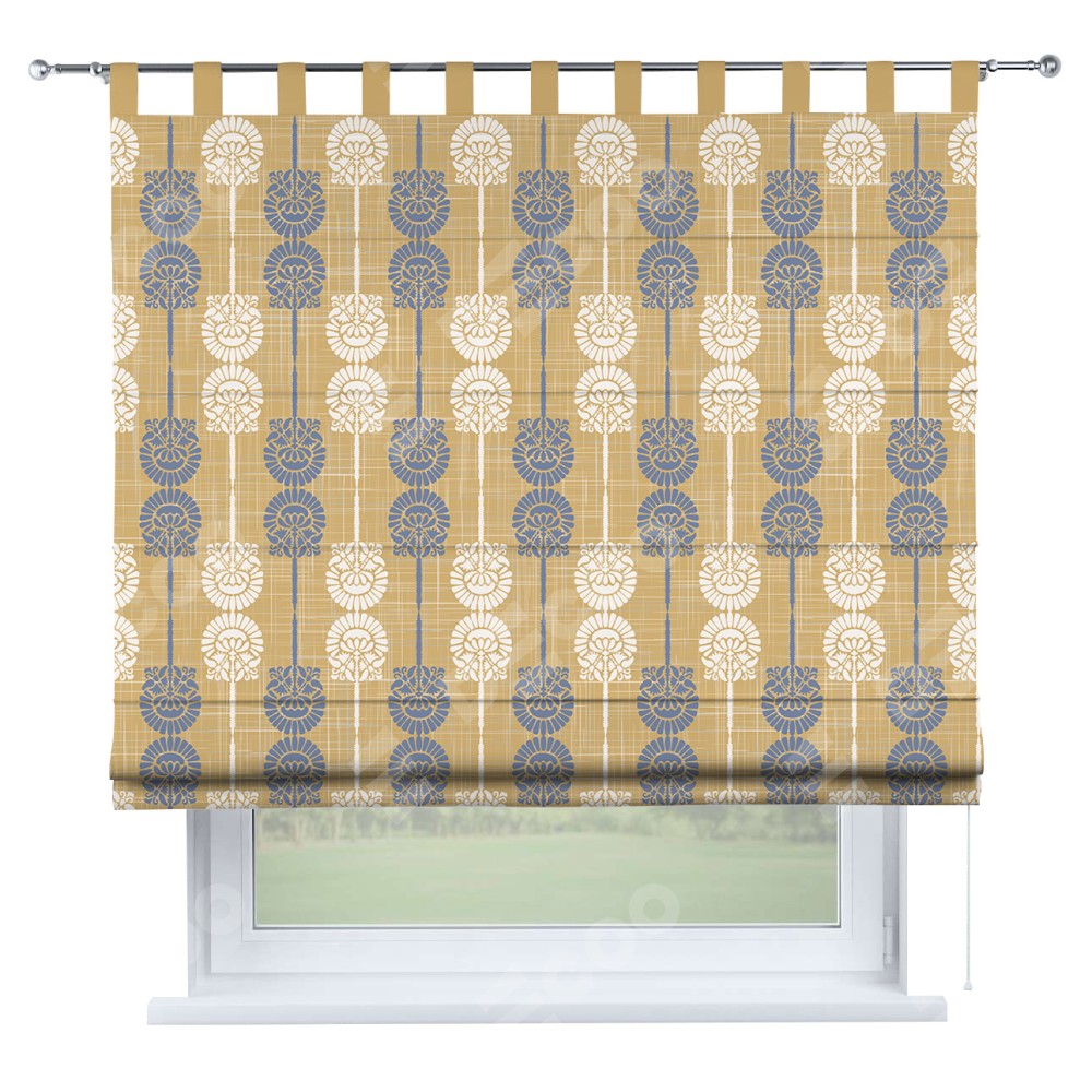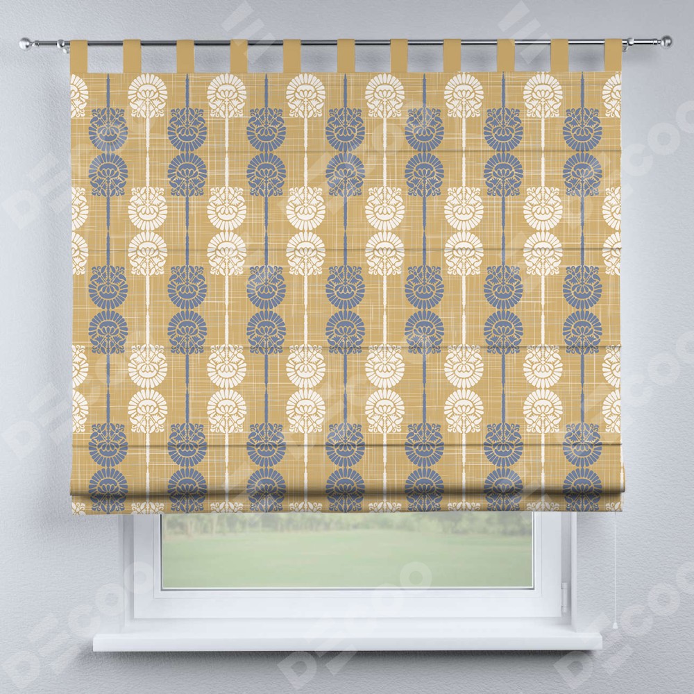 Римская штора производителя «Cortin», используется для проёма, пошита из ткани блэкаут с нанесением сублимационной печати «Венок из ромашки». Данная модель пошита на петлях, комплектуется на выбор круглым карнизом и подходит для монтажа на стену. Римская штора на петлях имеет простую систему регулировки высоты, отличительным преимуществом данной модели является простой способ монтажа. Достаточно повесить ее на трубу и штора готова!