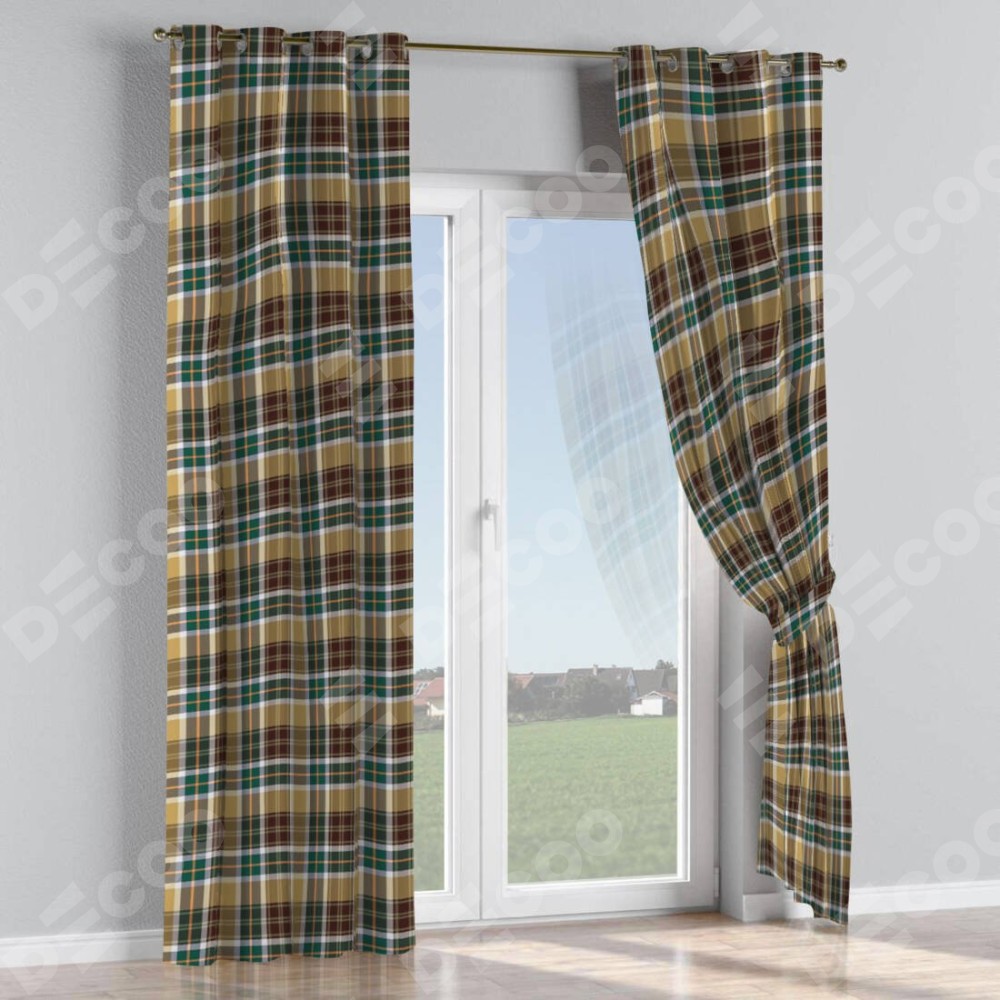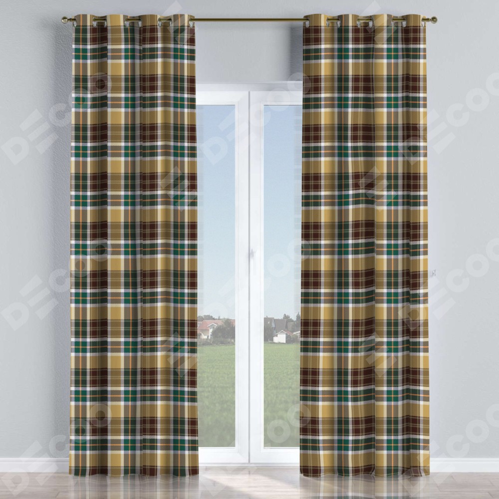 Комплект штор на люверсах «Бежево-зелёная клетка»