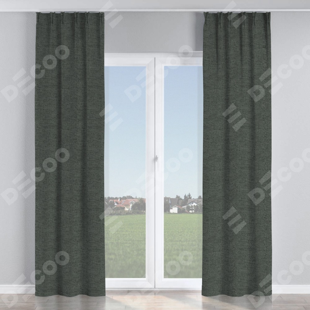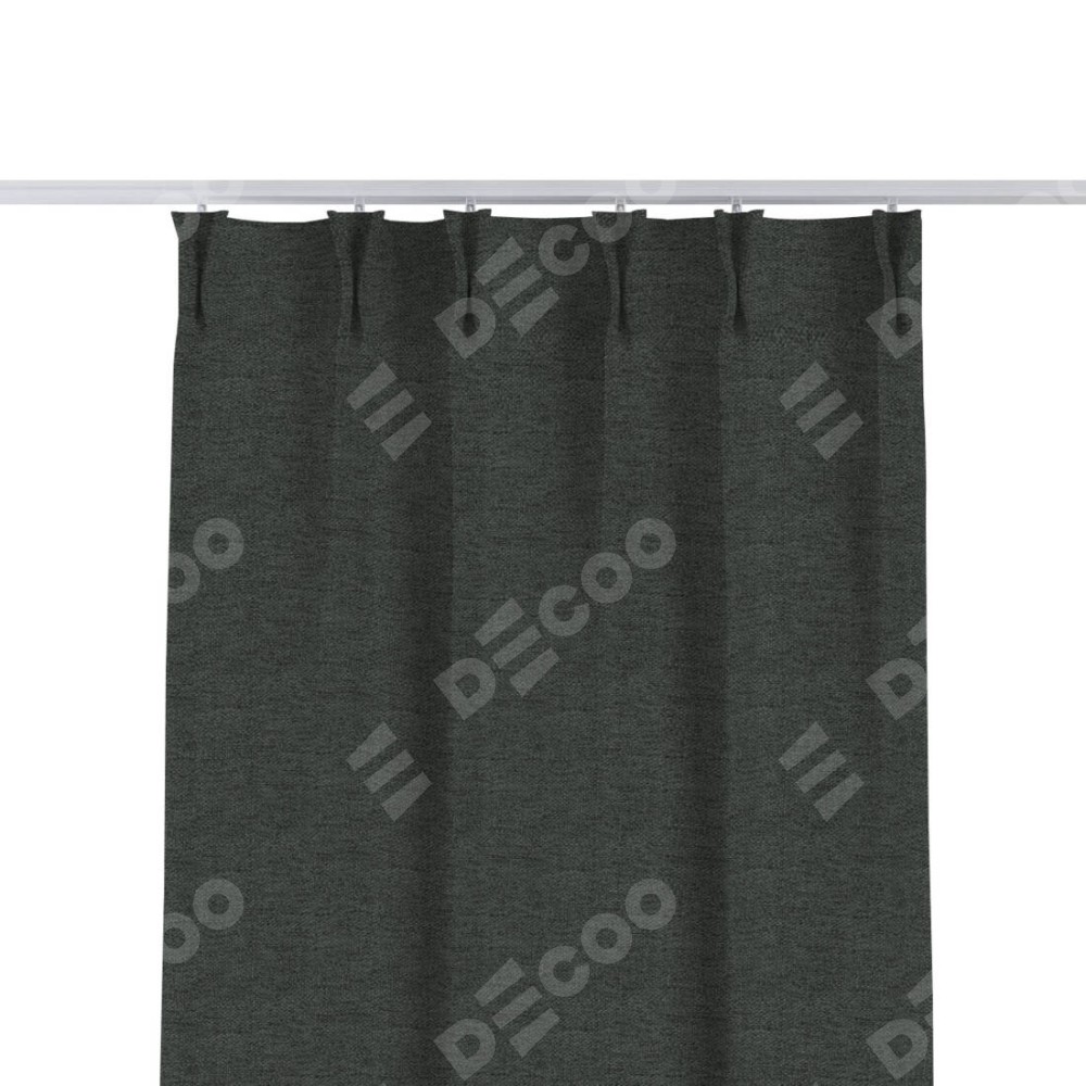 Комплект прямых штор, от производителя «Cortin», пошиты из ткани стиф димаут графит, артикул ткани 44026. С изнаночной стороны в верхней части штор пристрачивается шторная лента с декоративными складками «Кустик». Для создания элегантных складок прямые шторы шьются по стандарту с коэффициентом 1:2 (на 100 см. ширины проёма 200 см. ширины ткани).
