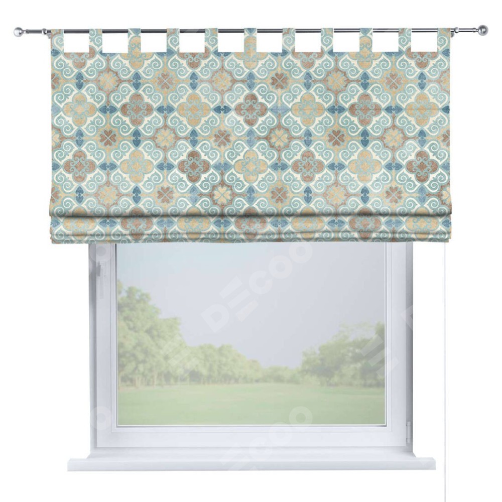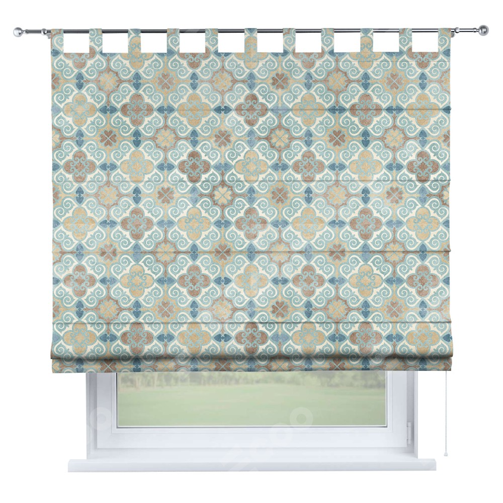 Римская штора производителя «Cortin», используется для проёма, пошита из ткани блэкаут с нанесением сублимационной печати «Фарида». Данная модель пошита на петлях, комплектуется на выбор круглым карнизом и подходит для монтажа на стену. Римская штора на петлях имеет простую систему регулировки высоты, отличительным преимуществом данной модели является простой способ монтажа. Достаточно повесить ее на трубу и штора готова!