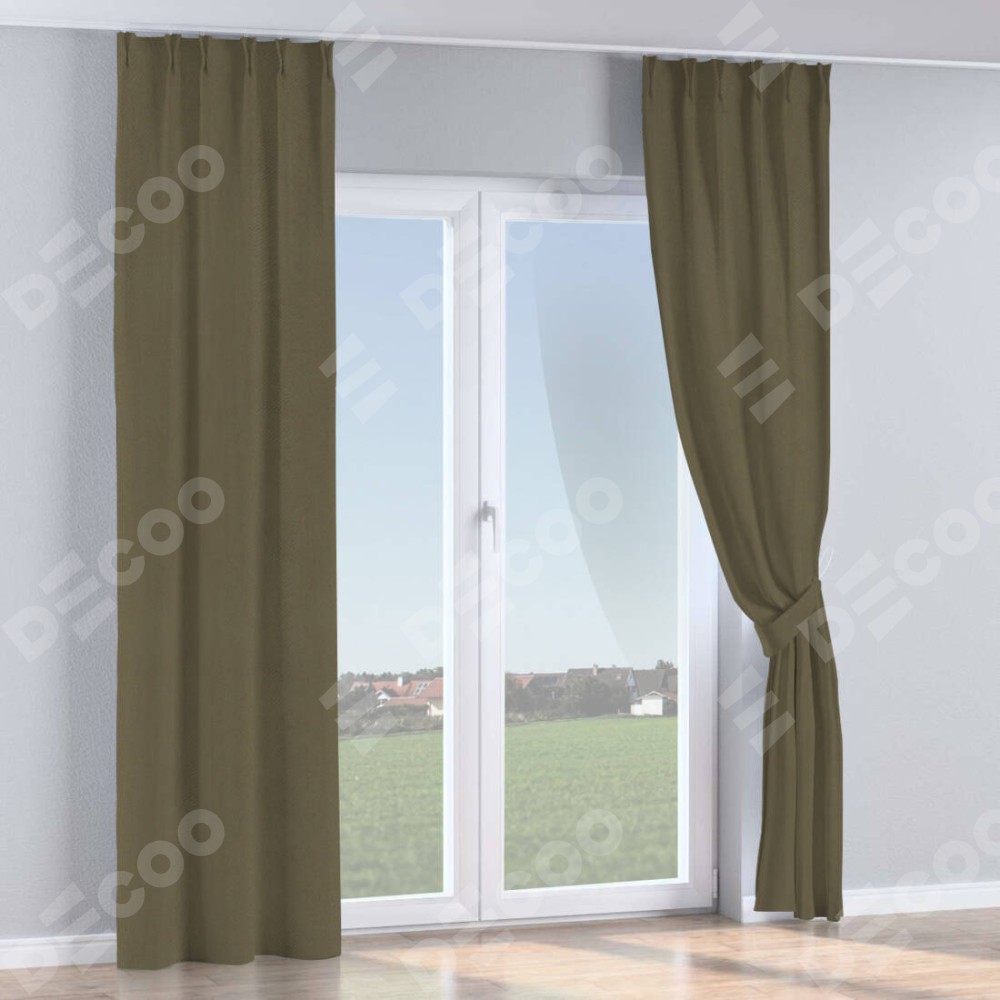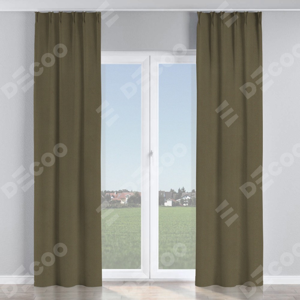 Комплект прямых штор, от производителя «Cortin», пошиты из ткани блэкаут однотонный кофейный, артикул ткани 6668−22. С изнаночной стороны в верхней части штор пристрачивается шторная лента с декоративными складками «Кустик». Для создания элегантных складок прямые шторы шьются по стандарту с коэффициентом 1:2 (на 100 см. ширины проёма 200 см. ширины ткани).
