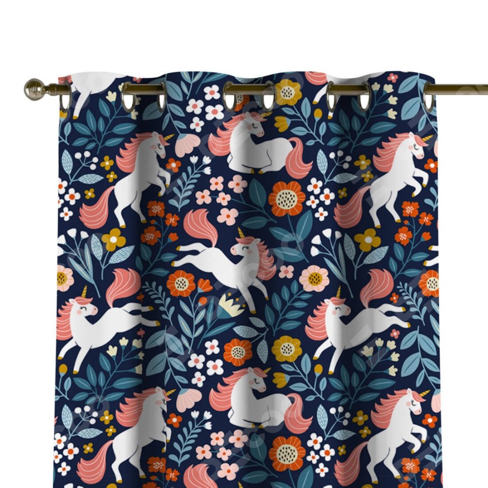 Комплект прямых штор, от производителя «Cortin», пошиты из ткани блэкаут с нанесением сублимационной печати «Цветы и единороги». Данная модель пошита на люверсах, комплектуется на выбор круглым карнизом и подходит для монтажа на стену или потолок. Прямые шторы на люверсах шьются по стандарту с коэффициентом 1/2 (на 100 см. ширины проёма 200 см. ширины ткани), отличительным преимуществом данной модели является простой способ монтажа. Достаточно повесить ее на трубу и штора готова!