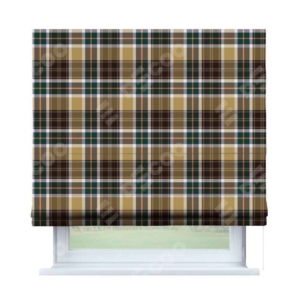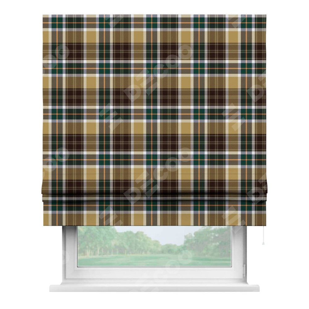 Римская штора «Кортин» для проема «Бежево-зелёная клетка»