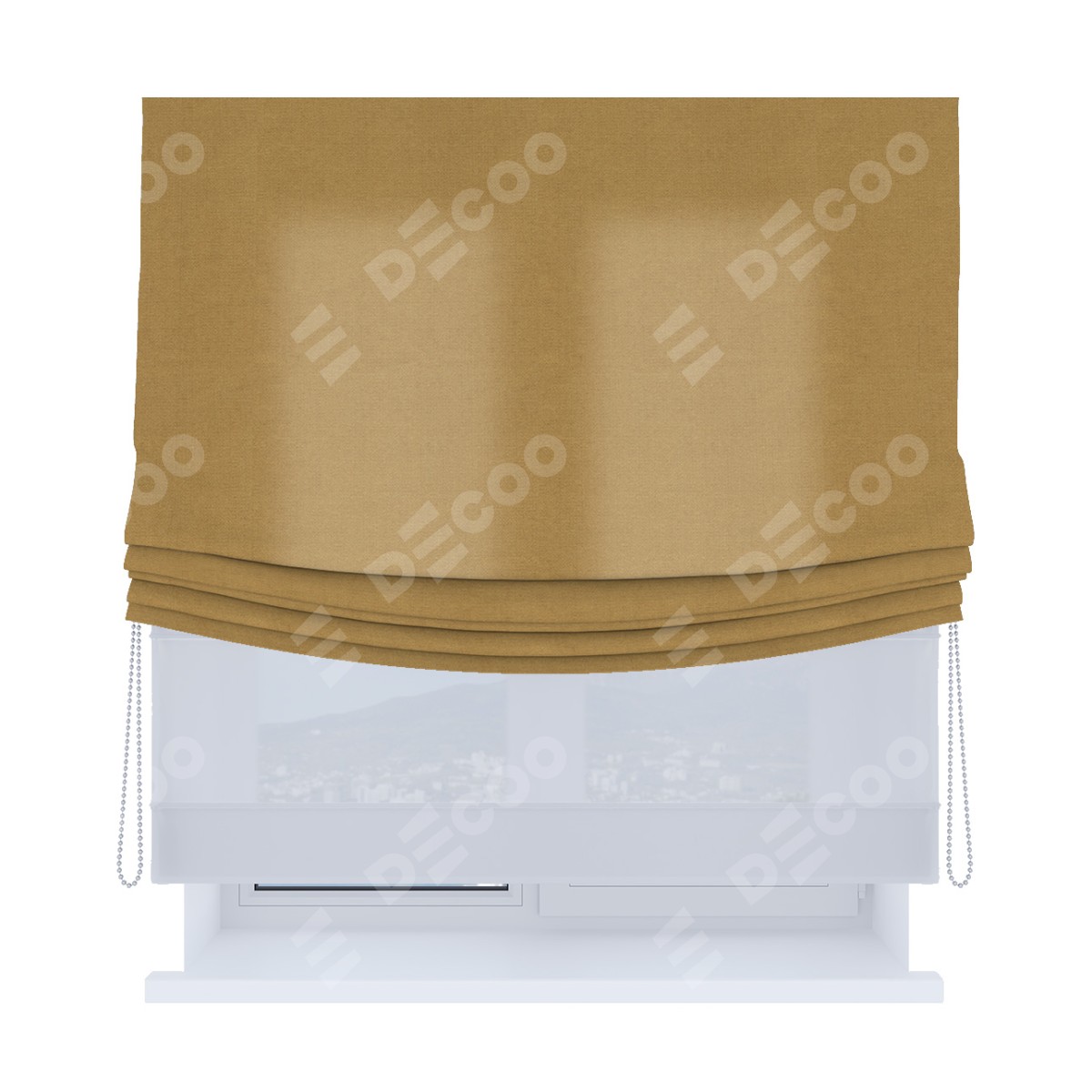 Римская штора день-ночь производителя «Cortin», используется для проёма, пошита из двух полотен, с лицевой стороны вельвет горчица артикул 17760, вторая ткань тюль (по стандарту комплектуется тюль белого цвета артикул V-01). Имеет универсальный механизм и подходит для монтажа: на потолок, на стену и в нишу. Удобное управление каждой шторой отдельно.