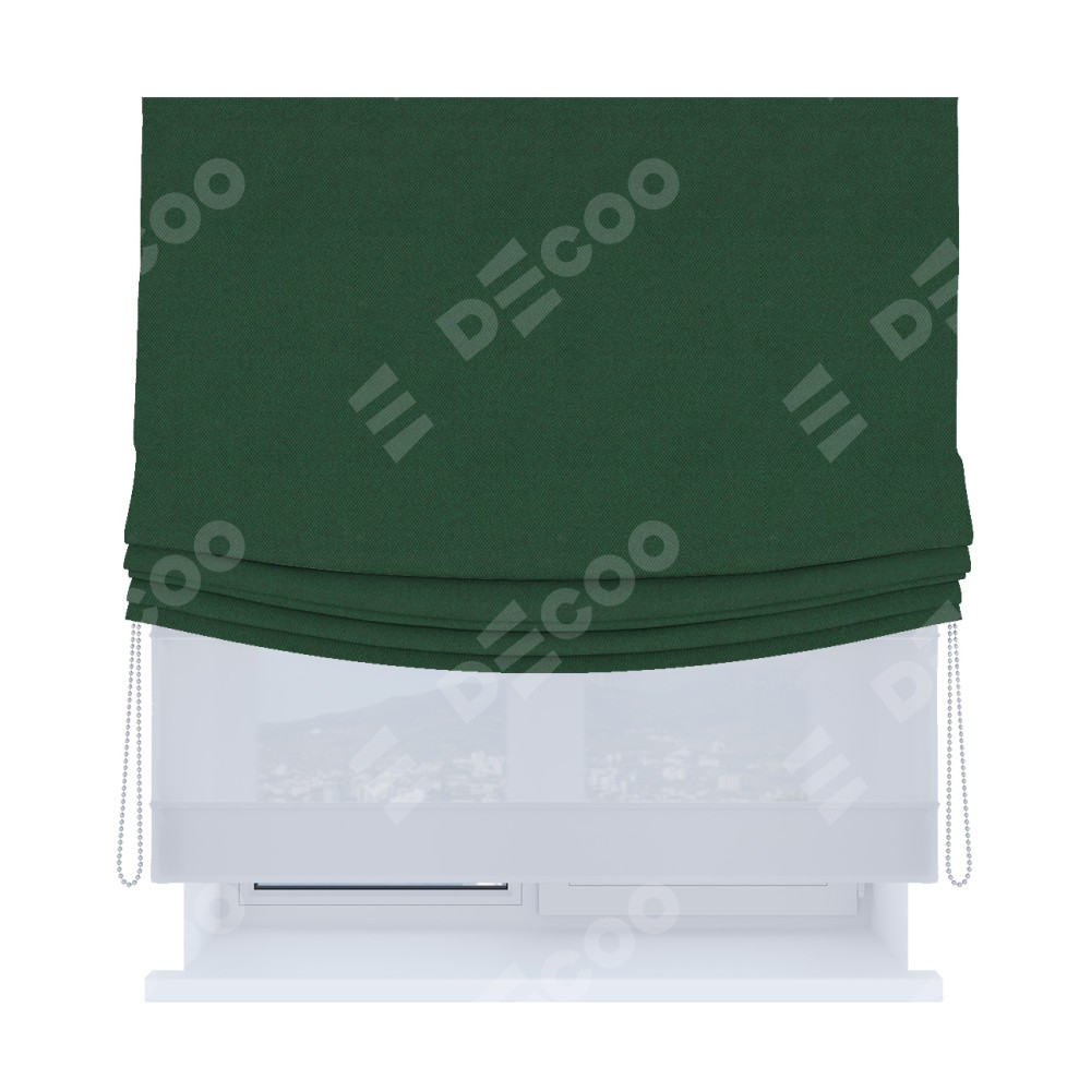 Римская штора «Кортин», день-ночь с мягкими складками, лён димаут тёмно-зелёный