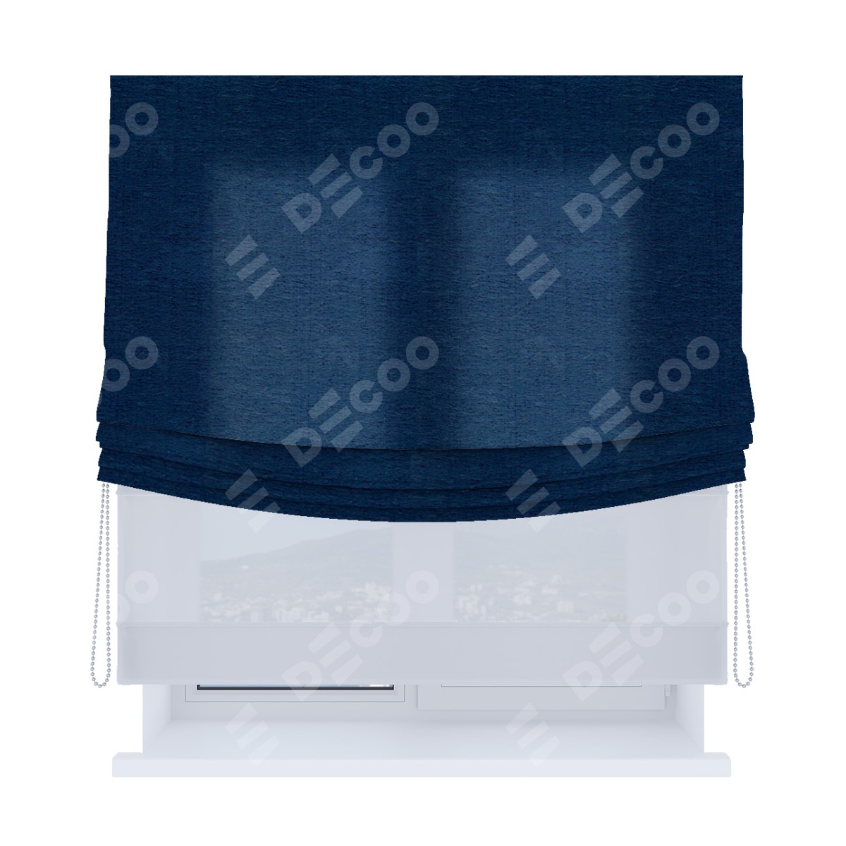 Римская штора день-ночь производителя «Cortin», используется для проёма, пошита из двух полотен, с лицевой стороны софт однотонный синий артикул 42937, вторая ткань тюль (по стандарту комплектуется тюль белого цвета артикул V-01). Имеет универсальный механизм и подходит для монтажа: на потолок, на стену и в нишу. Удобное управление каждой шторой отдельно.