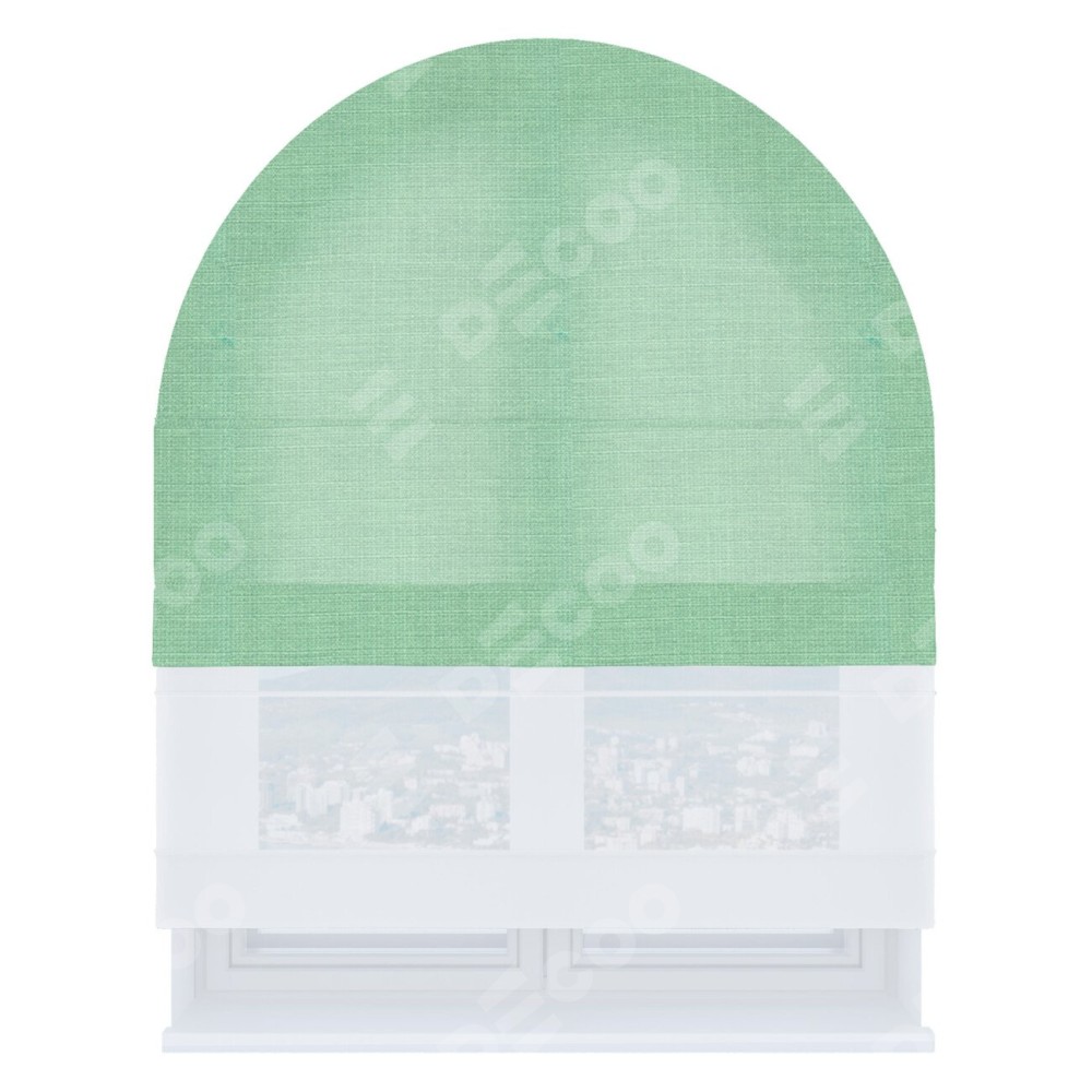 Римская штора день-ночь производителя «Cortin», используется для арочного проёма, пошита из двух полотен, с лицевой стороны лён светло-бирюзовый артикул 74737, вторая ткань тюль (по стандарту комплектуется тюль белого цвета артикул V-01). Штора шьётся по индивидуальным размерам, для данного типа римской шторы возможная ширина от 60 до 300 см. Удобное управление каждой шторой отдельно.