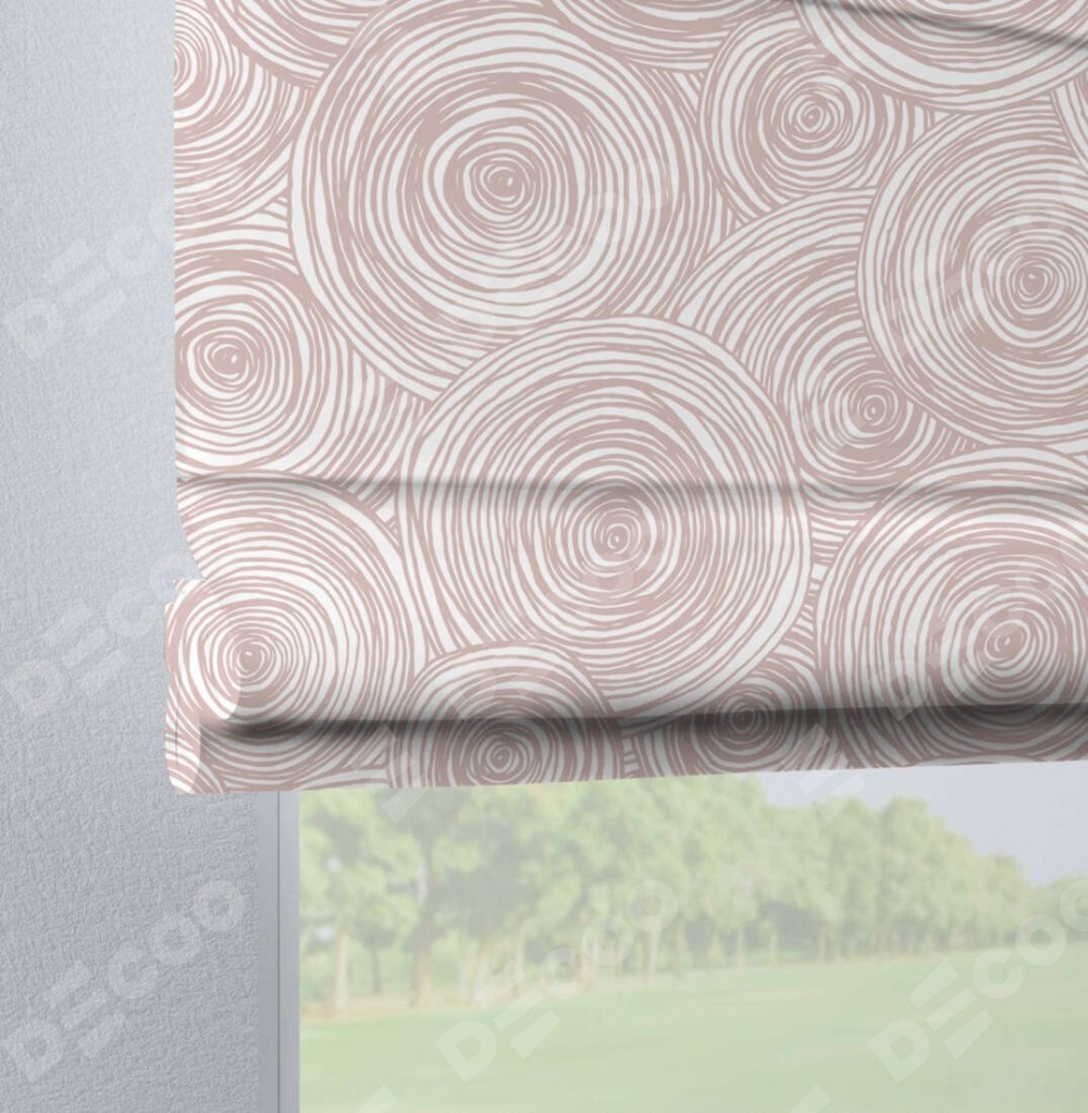 Римская штора производителя «Cortin», используется для проёма, пошита из ткани блэкаут с нанесением сублимационной печати «Бежевые круги». Данная модель пошита на петлях, комплектуется на выбор круглым карнизом и подходит для монтажа на стену. Римская штора на петлях имеет простую систему регулировки высоты, отличительным преимуществом данной модели является простой способ монтажа. Достаточно повесить ее на трубу и штора готова!