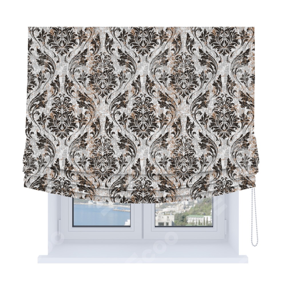 Римская штора Soft с мягкими складками, «Дамаск тёмный»