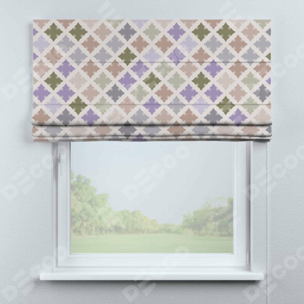 Римская штора производителя «Cortin», используется для проёма, пошита из ткани блэкаут с нанесением сублимационной печати «Фигурные плитки». Имеет универсальный механизм и подходит для монтажа: на потолок, на стену и в нишу.