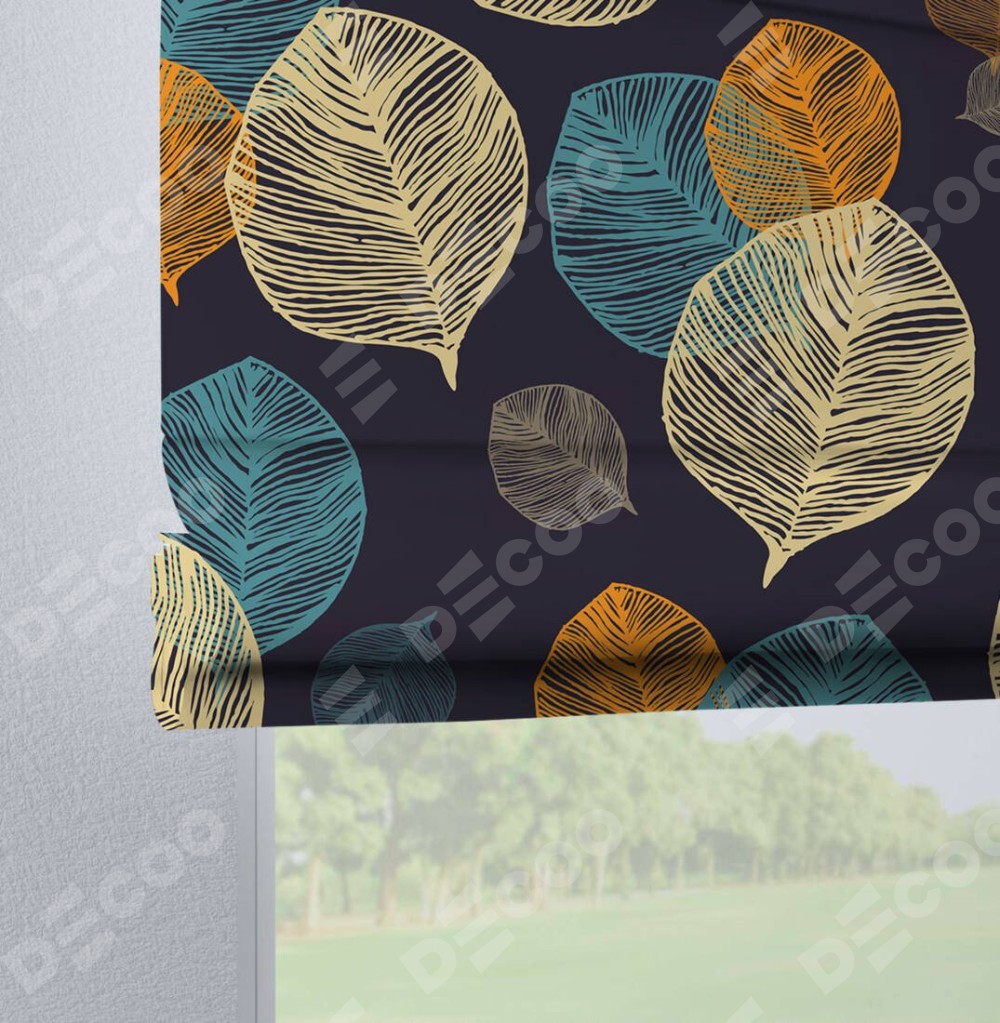 Римская штора производителя «Cortin», используется для проёма, пошита из ткани блэкаут с нанесением сублимационной печати «Листья в ночи». Данная модель пошита на петлях, комплектуется на выбор круглым карнизом и подходит для монтажа на стену. Римская штора на петлях имеет простую систему регулировки высоты, отличительным преимуществом данной модели является простой способ монтажа. Достаточно повесить ее на трубу и штора готова!